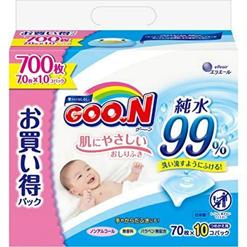 「大王製紙 グーン 肌にやさしいおしりふき つめかえ用 70枚×10個 E463565H」▼4902011735420▼(商品説明)・ 4957434009009説明 大王製紙 グーン 肌にやさしいおしりふき つめかえ用 70枚×10個 E463565H