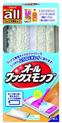 「リンレイオールワックスワイパーモップ1枚」▼4903339982374▼(商品説明)「オールワックスワイパー」専用のモップです。・(b)商品サイズ (幅X奥行X高さ) :(/b) 117×30×265mm説明 「オールワックスワイパー」専用のモップです。新開発のワックス専用ファイバー採用でしっかりムラなくキレイに仕上がります。ループ糸がワックス液をたっぷり吸収し、細かい繊維でムラなくキレイに塗ることができます。さらに、洗って繰り返し使えるのでとっても経済的です。また、店舗などの広いフローリングもラクラクワックスが塗れます。
