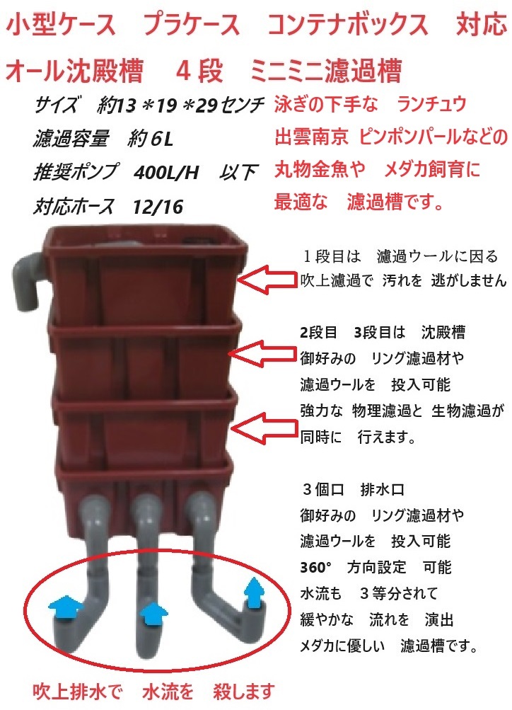 オール沈殿槽 2段 ミニミニ濾過槽は ボックスを 増やして 3段(+1000円) 4段(+2000円)と