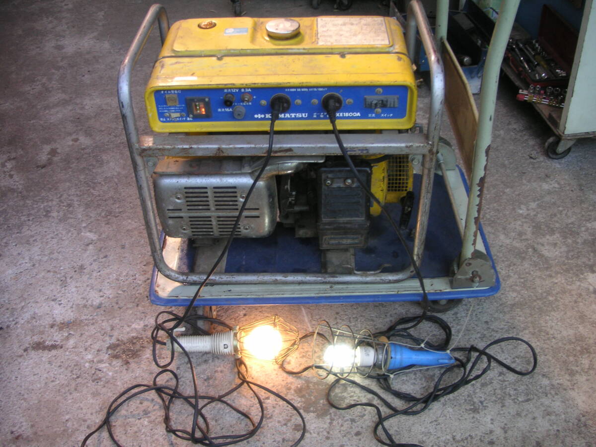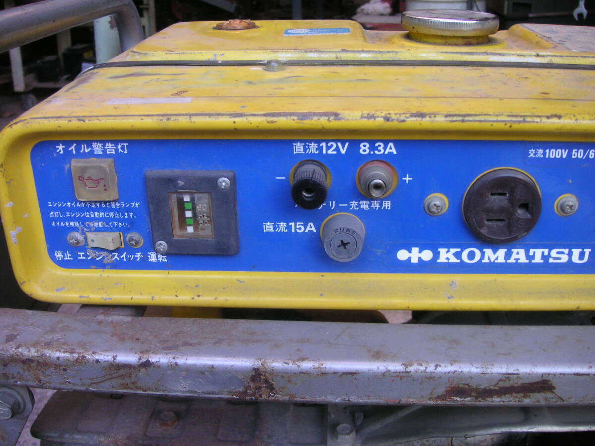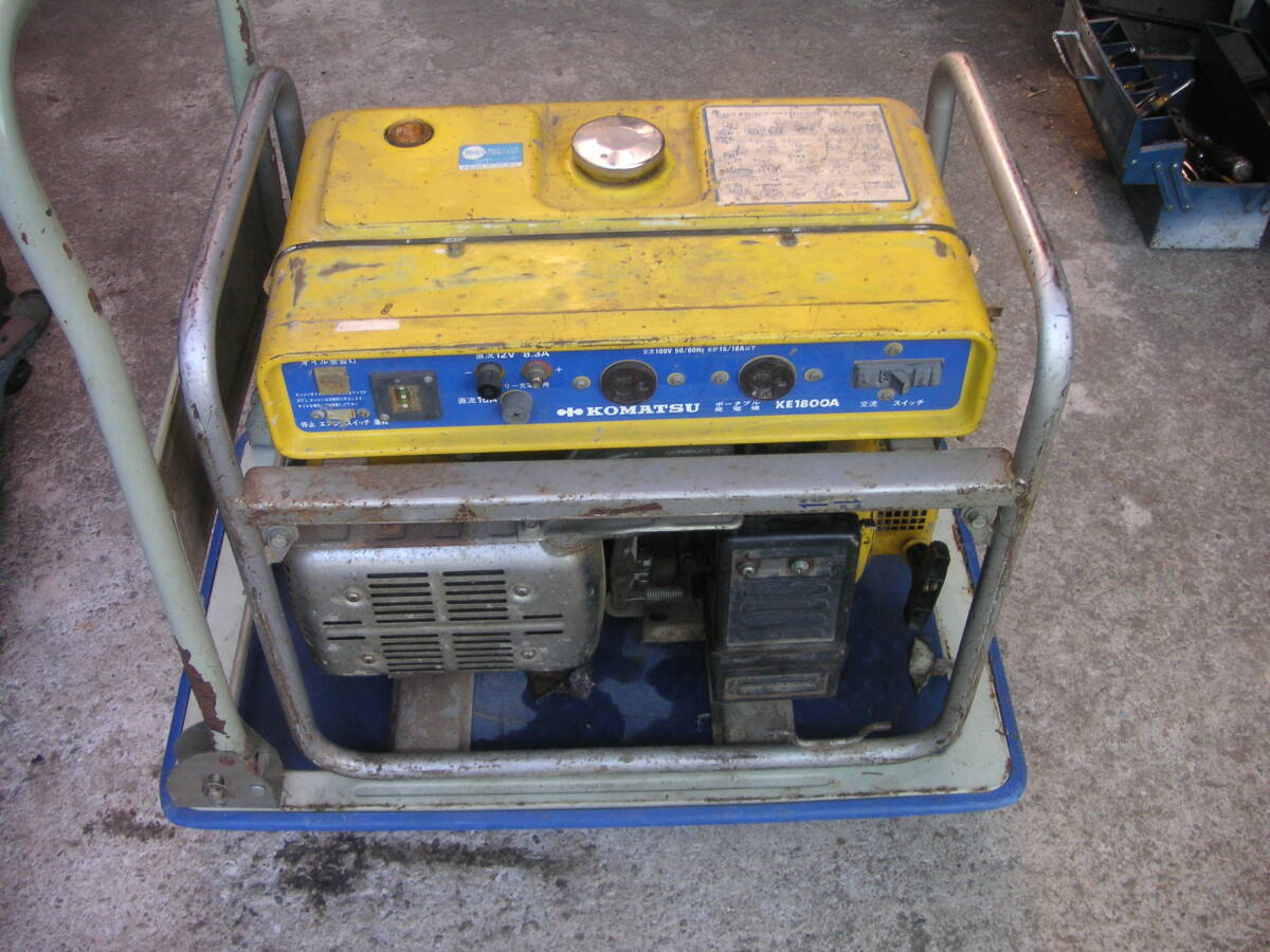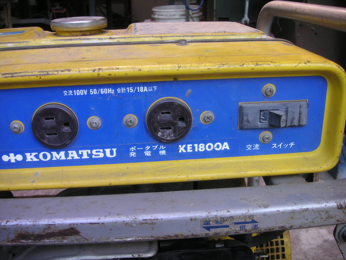 コマツのポータブル発電機 KE1800Aの中古実動品です。交流100V18A 12V8.3A。