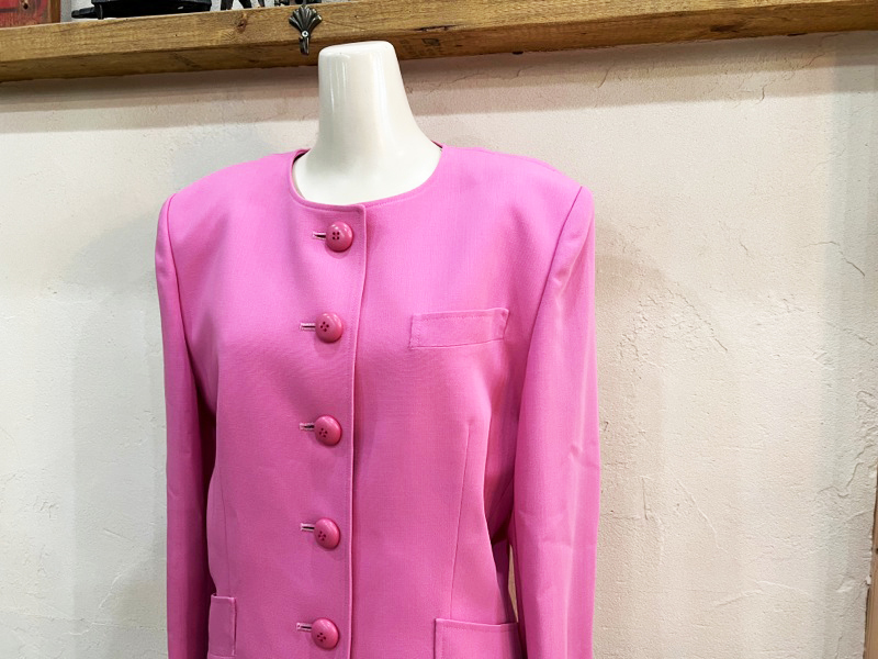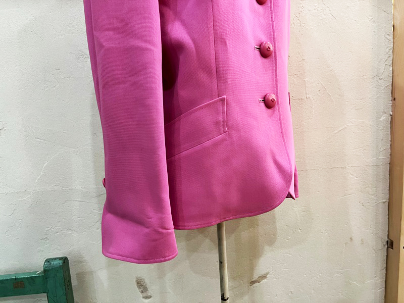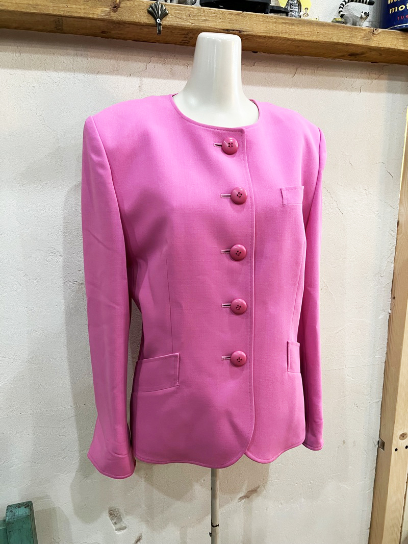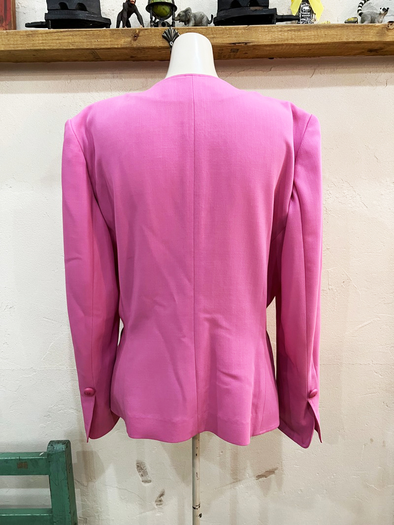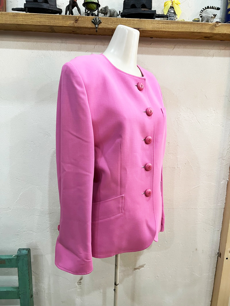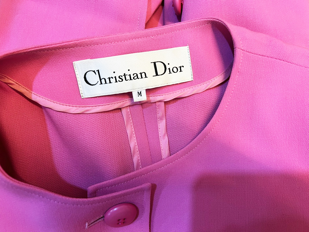 C74★ChristianDior/クリスチャンディオール Vintage ノーカラービビットカラージャケット Mサイズ レトロ ピンク ヴィンテージ ★