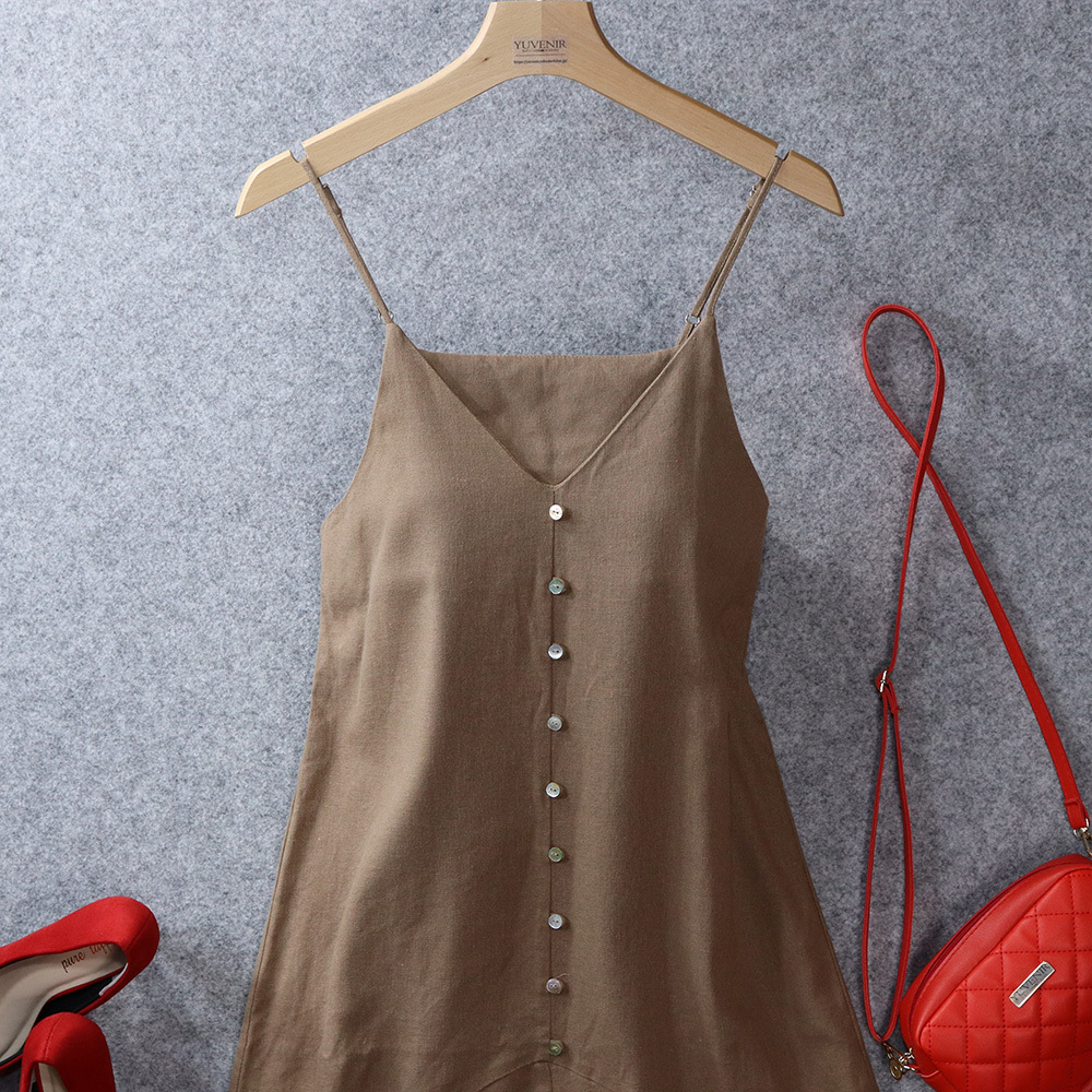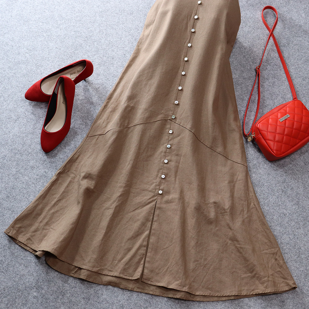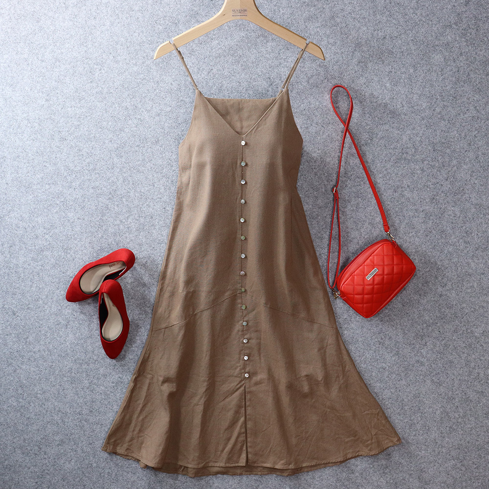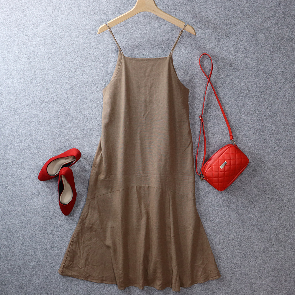 ナチュラルクチュール natural couture コットン リネン 前後 2way 貝釦 ロング キャミソールワンピース モカ 綿 麻 マキシ丈 フレア FREE | |||