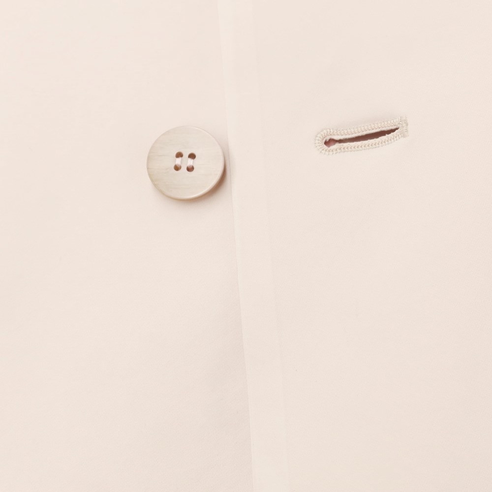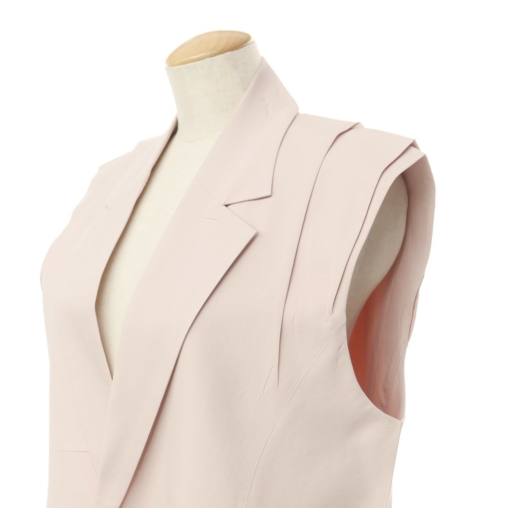 ハリのあるさらりとしたポリエステル系生地を使用した、2024年春夏のノースリーブコートです。淡いピンク系のカラーが魅力的で、ノースリーブのデザインなので様々なレイヤードスタイルに合わせられるアイテムに仕上げられています。