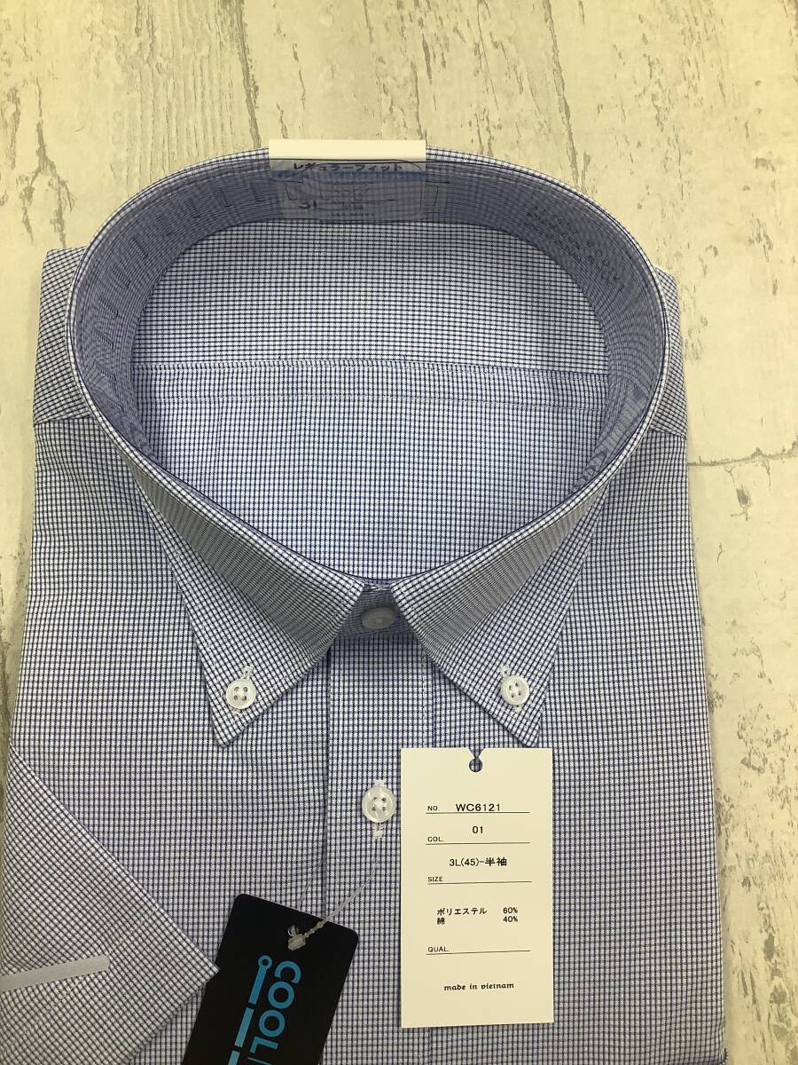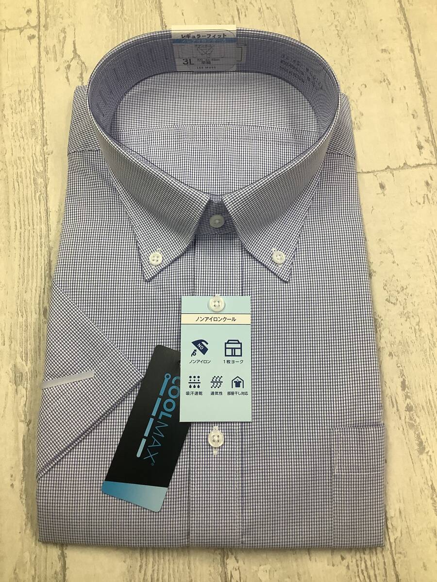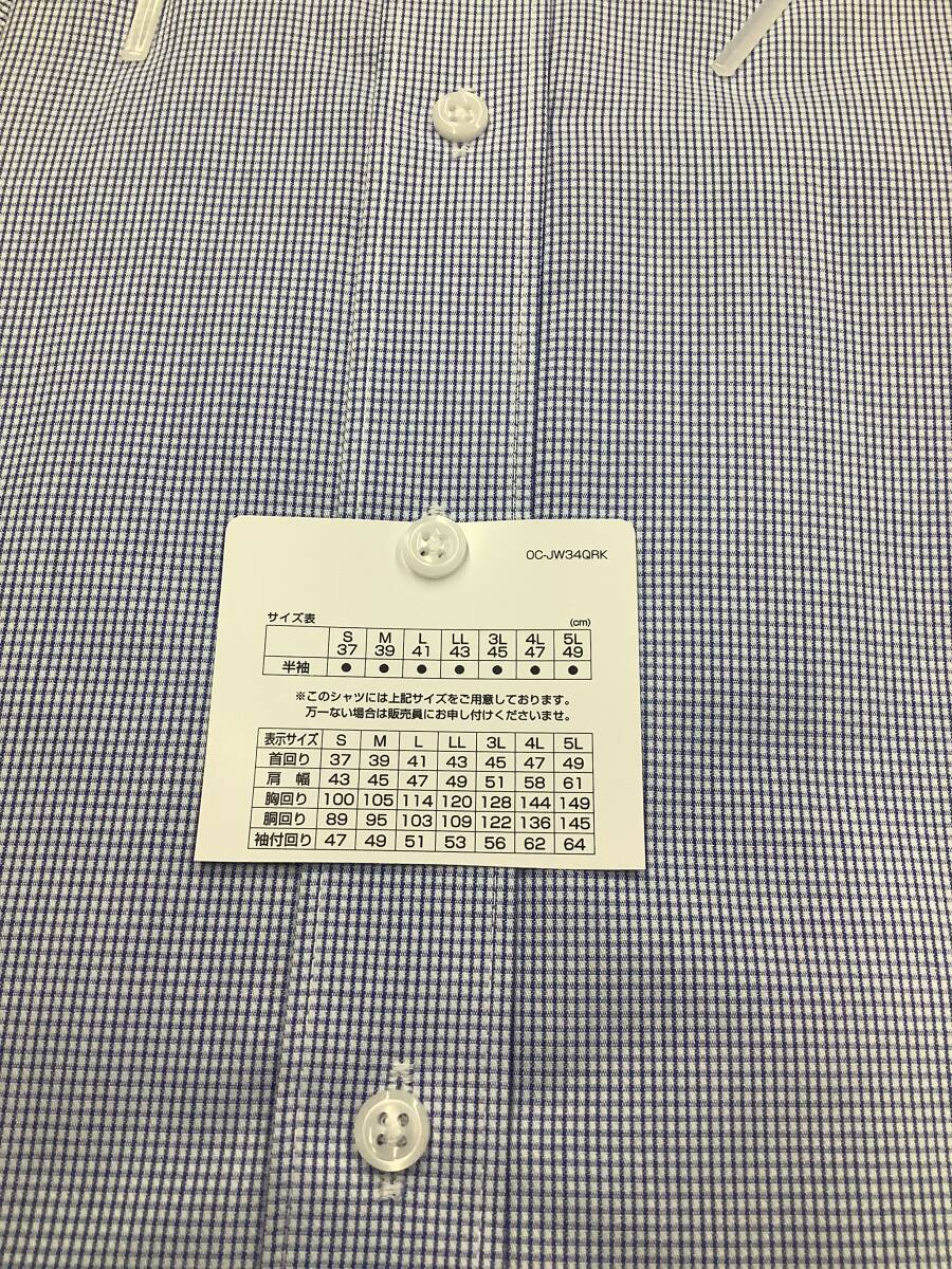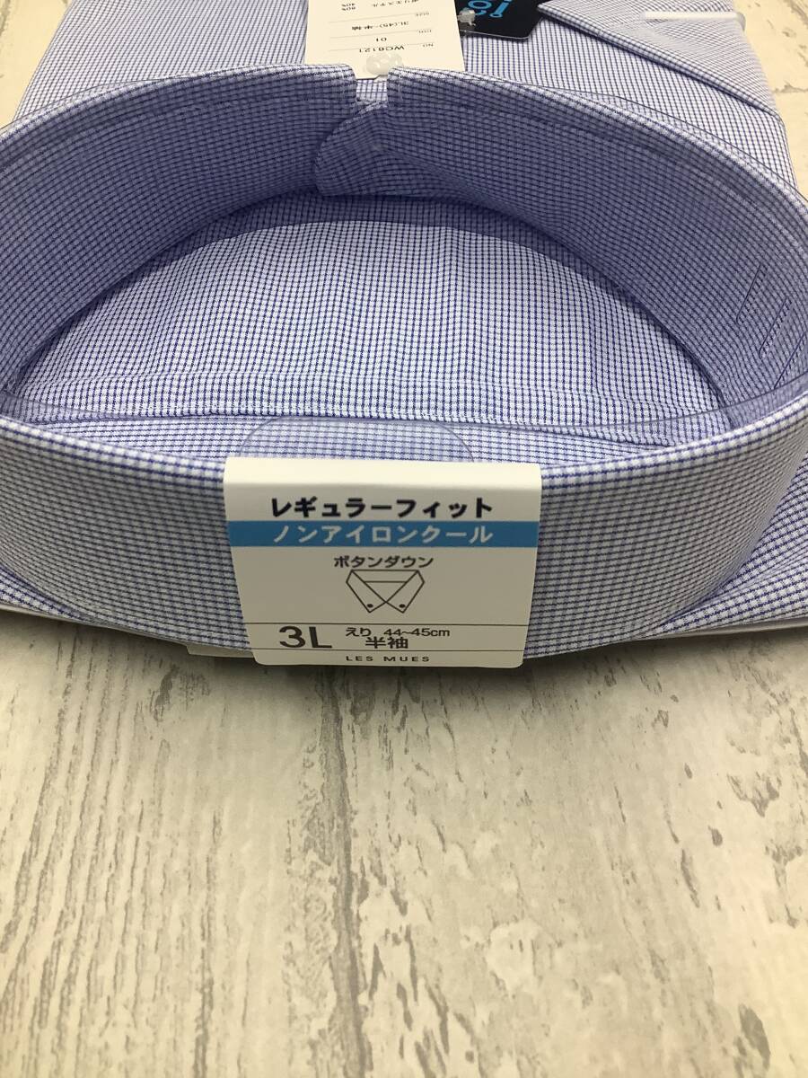 新品未使用 3Lサイズ 45cm 半袖シャツ サックスブルー色系 チェック柄 クールビズ対応 ボタンダウンドレスシャツ