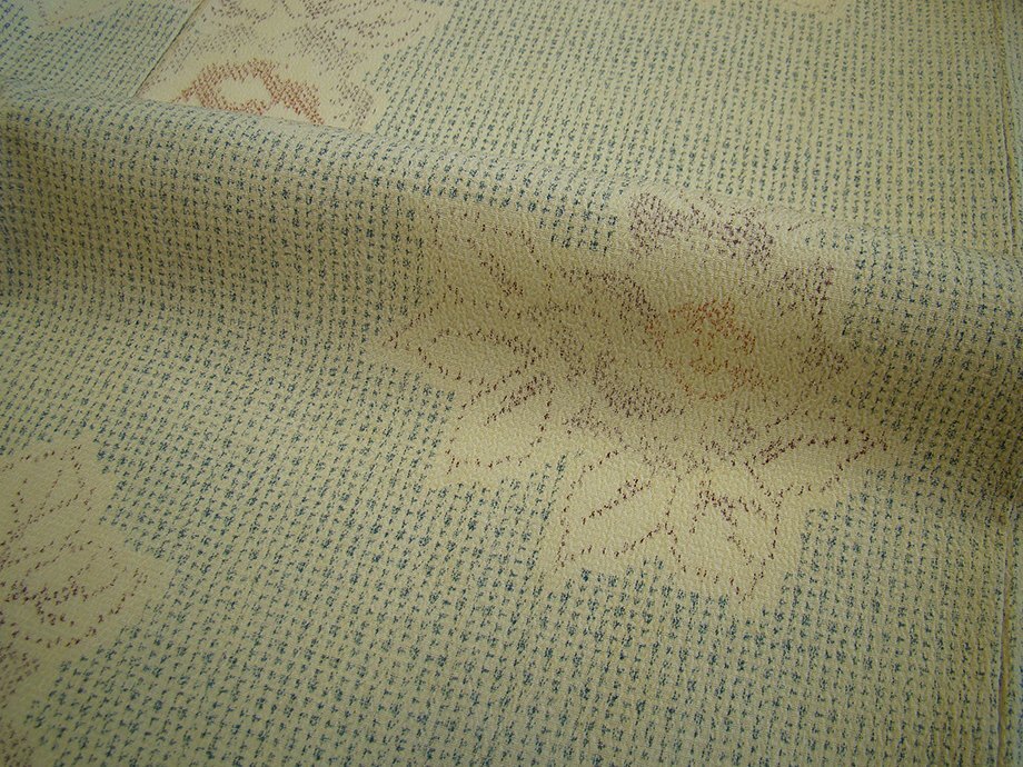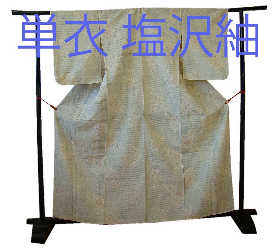 商品説明 | こちらのお品は「単衣」仕立てですので、5月、6月、9月にお召頂ければと思います。 着物には、大きく分けて「袷(あわせ)の着物」と「単衣(ひとえ)の着物」と「夏着物」があります。 反物(表地)を着物に仕立てるときに、裏地類をつけるものを袷の着物、 つけないものを単衣の着物と呼び、胴裏や八掛といった裏地がつかない一枚ものの着物です。 また裏地がないため、座る時などにヒップのラインが目立たないよう、 居敷当て(いしきあて)の生地をつけることもあります。 居敷当ては付いておりません。 古くから織物の産地として知られている新潟県の塩沢地方。 「単衣といえば塩沢」と知られるように、初夏と初秋の数ヶ月、 着物通をとりこにして離さない着物。 今では四季を通じ、オールシーズン愛用されており、単衣にも袷にも最適な洒落紬でございます。 他の着物には類を見ない「しゃり感」たっぷりの独特の肌触りと 適度なハリは伝統的工芸品の、塩沢紬ならではのものでございます。 絶妙の地風が着物通の方々を虜にする極上の着心地を誘うシャリ感あるさらりとした塩沢紬、 渋い練色地に藍鼠、葡萄色等の花草柄の織柄、 また、バチ衿仕立てとなっております。 涼しげで爽やかな素材感が愉しく、暮らしに幅広くお召頂ける逸品です。 残念ながら証紙残布は付いておりません。 |
