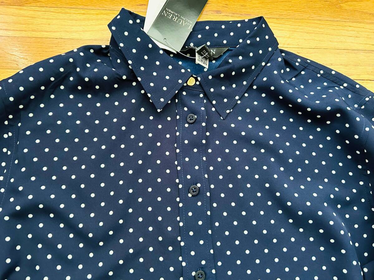購入先:アメリカのラルフローレンアウトレット 状態:新品タグ付き アメリカサイズ:XL 日本サイズ:大体15号くらい 実寸:胸囲120cm、肩幅48cm、袖65cm、着丈74cm 素材:ポリエステル100% 胸元、袖口にはゴールドのロゴボタン入り、コーデのしやすい定番のブラウスです。 | |||