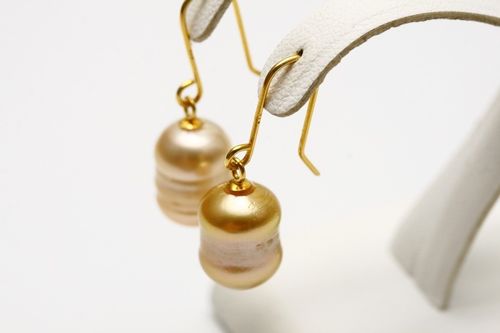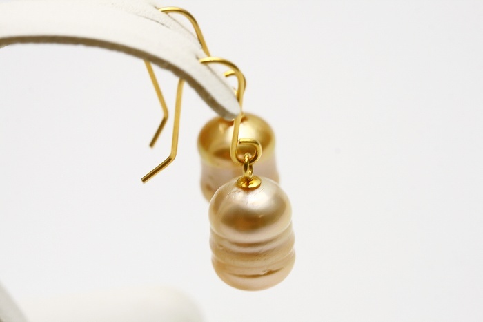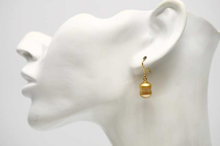 フックデザインの南洋パールピアスです。 よりカジュアルにパールをお楽しみ頂ける人気のデザインです。 お付け頂いた時にパールが美しく揺れ動きます。 エレガントなナチュラルゴールドカラーのお色目の珠をあしらいました。 耳元でパッと明るく煌めきます。 | |