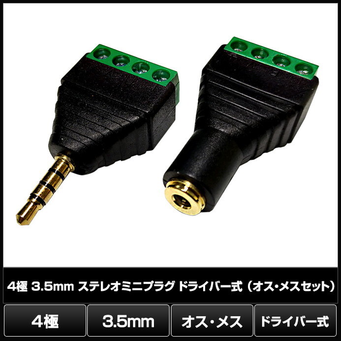 | 4極 3.5mm ステレオミニプラグ ドライバー式 (オス・メスセット) | 1個 |