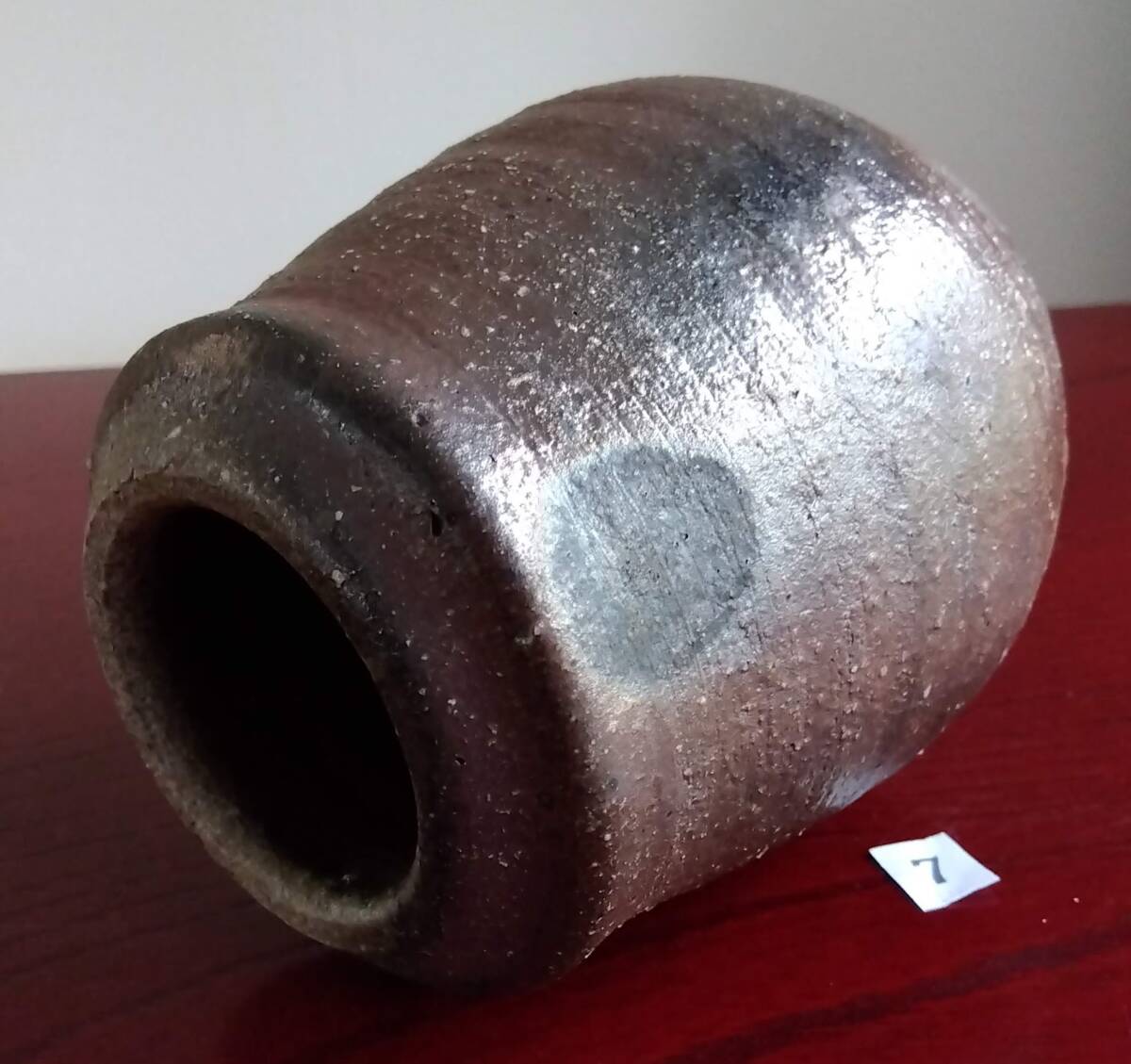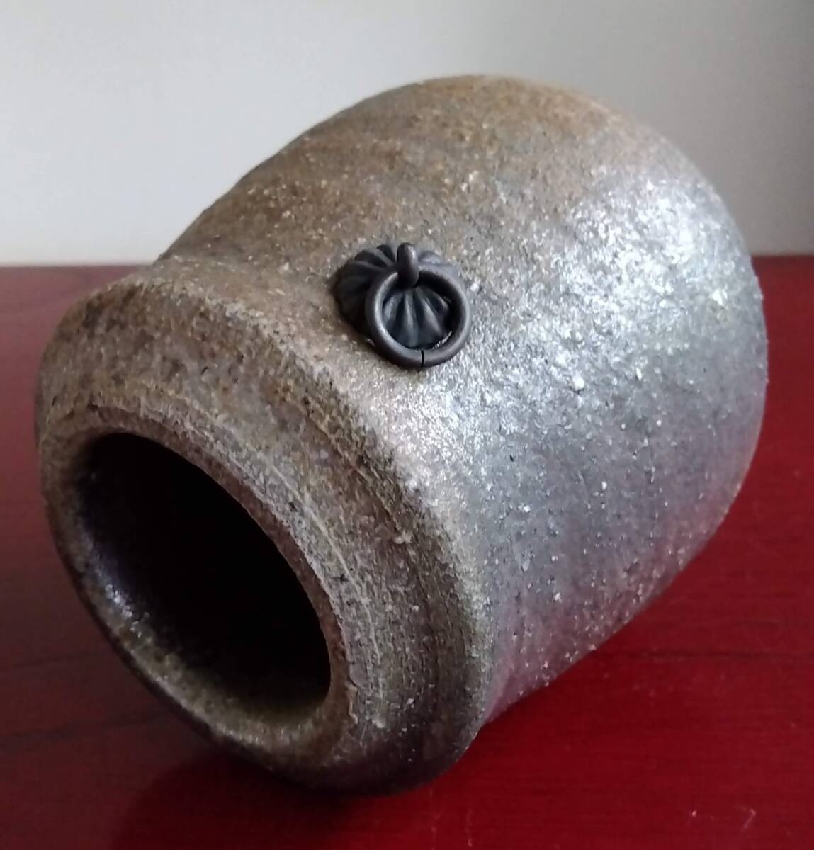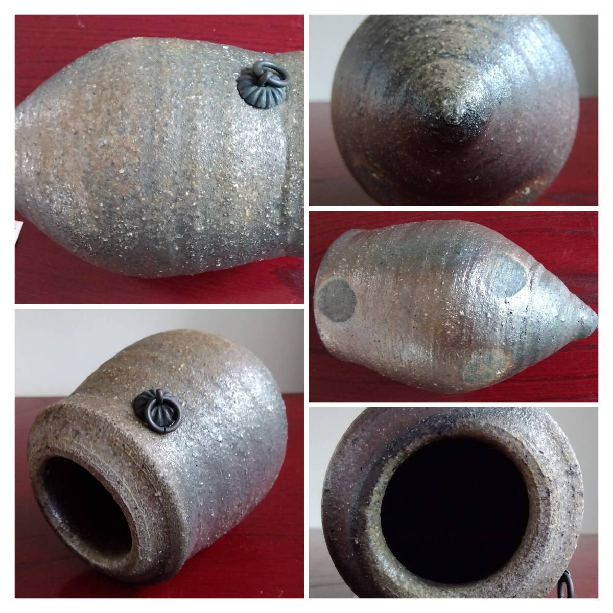 越前焼の名工 白越不朝(塩越窯)自然灰釉の究極美が迸る逸品灰釉美 壁掛け涙型花器 No:7 20mm程の玉縁RIM縁から口元肩胴腰にかけなだらかでふくよかななみだ型花器は 越前焼独特の「ねじ立て」「輪積み形成」「はがたな伸ばし」そして「しのぎ」と豪快な面取りの伝統技法を駆使し どっしりとした重量感/躍動美/風趣が溢れ 還元炎の輪廻の色彩と質素ながら極めて奥深い風合い無限の幽玄美/崇高美おも感じさせる心和む自然灰釉美に覆いつくされています。 穴釜陶芸美に全霊を捧げられている白越不朝師が亘ずね感謝されている薪と炎の神様がもたらしてくれた逸品です。 師の「至高の技」が心和む「究極窯変美」に焼き上がり、器に浮き出る自然灰釉美は越前焼魅力の世界を再確認させてくれます。 越前陶土「青ねば・赤べと・太古土」を活かす形で作られ、越前(陶土)が表す独特の質感 温かみのある土色に自然灰釉が組み合わさった魅力的な作品です。 質素ながら極めて奥深い風合い 無限の幽玄美/崇高美おも感じさせる心和む自然灰釉美 技巧的表現をも還元焼成させる際立つ(陶土)が表す独特の質感 薪と炎の神様が生み出した偶然の景色を楽しんで下さい。 サイズ 口径40㎜ 胴厚85/90mm長径135mm 包装:クラフトボックスプチプチ包装 【出品中の商品を見る】より 他にも多数の白越不朝作品を出しておりますので御参照してください。同梱可能ですので宜しくお願い致します。