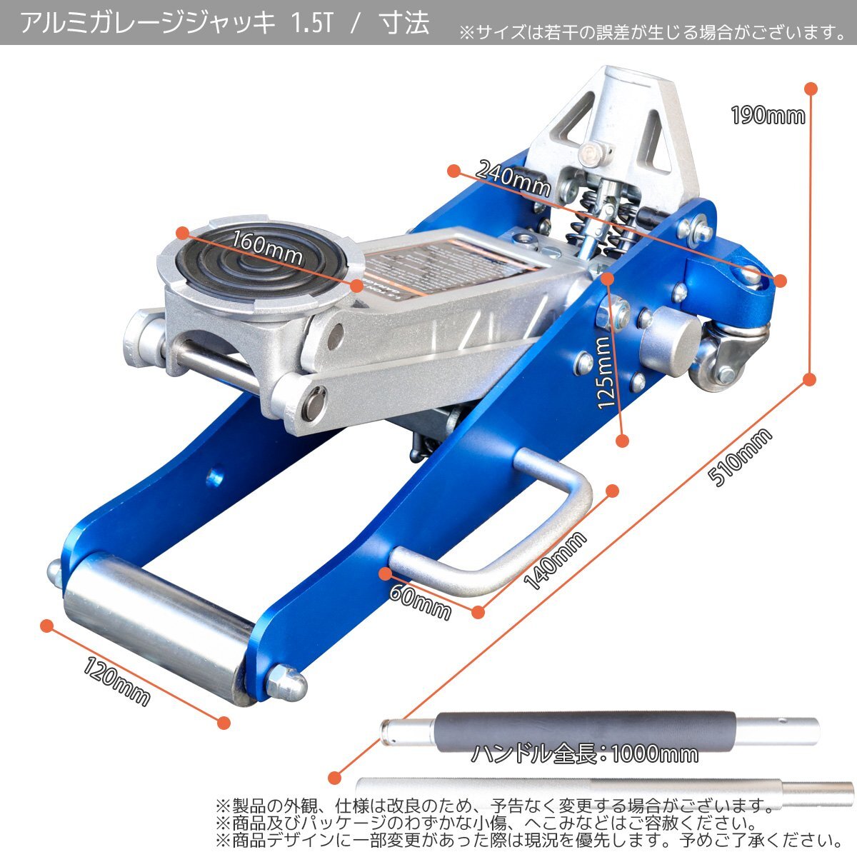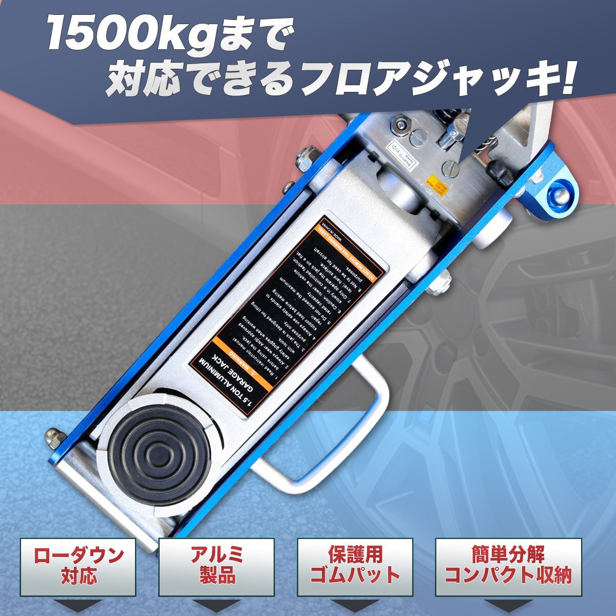 【アルミジャッキ】フロアジャッキ アルミガレージ ジャッキ 1.5t (1500kg)油圧式 ローダウン 軽量 保護パッド付低床 デュアルポンプ