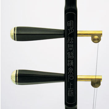 調弦のしやすい金属軸糸巻き採用の黒檀二胡。 重く透き通った音色です。
