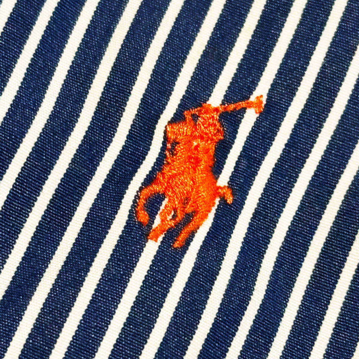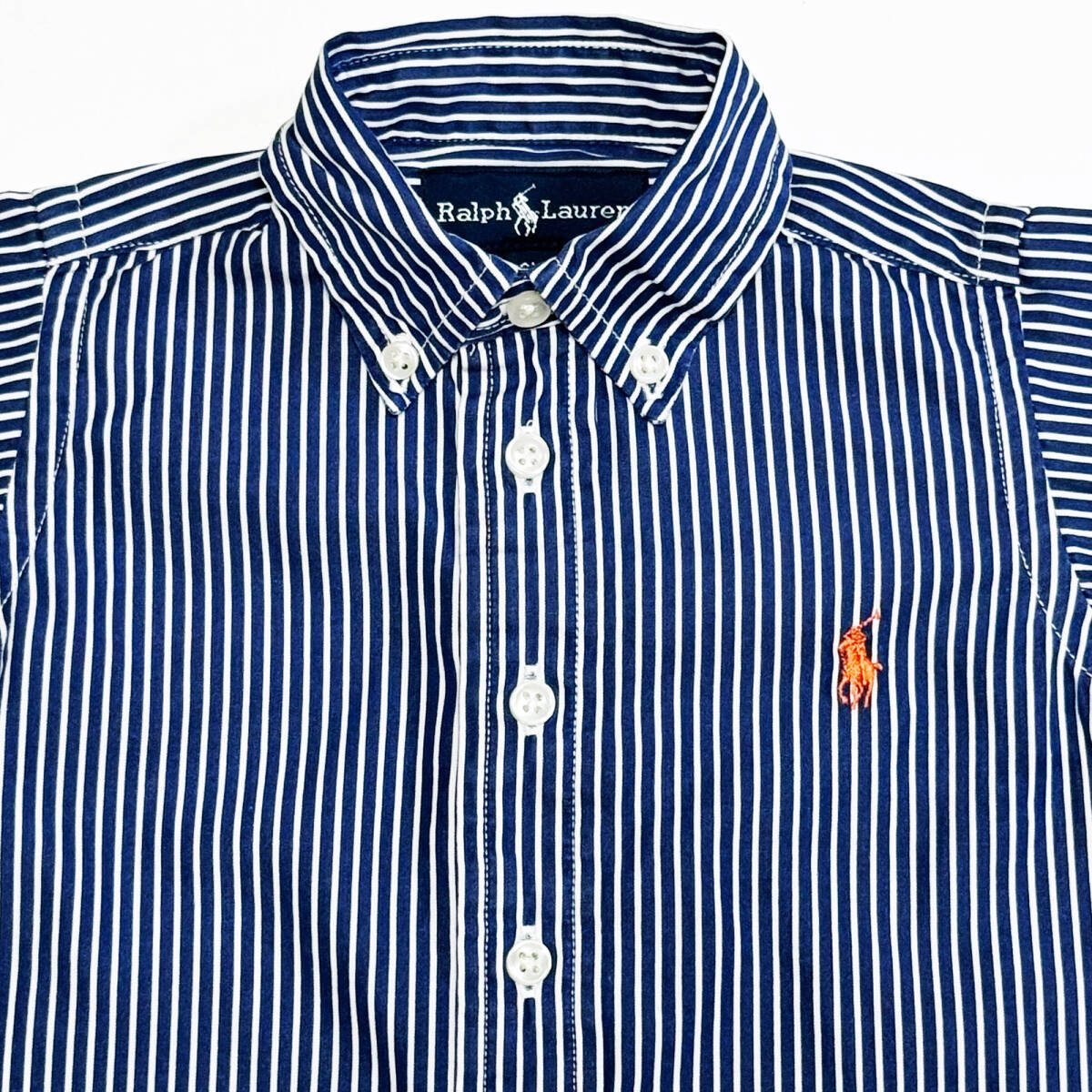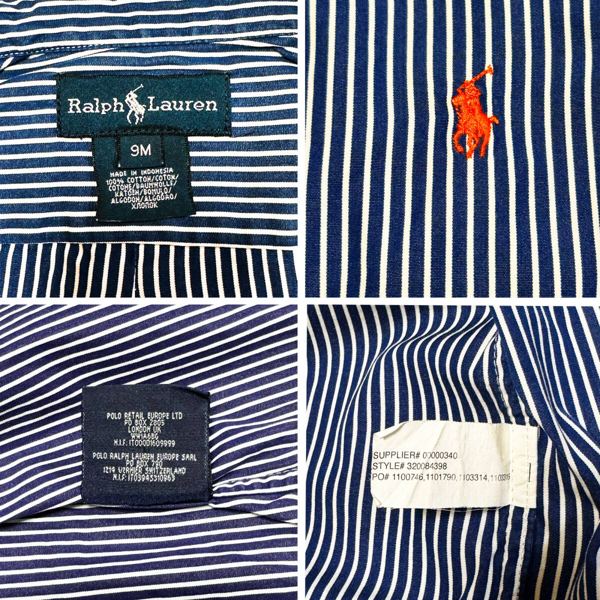 商品説明 | POLO RALPH LAUREN KIDS/ポロラルフローレンキッズ ストライプボタンダウンシャツです。 100%コットン・ブロード素材、カラー・ネイビー/ホワイト ストライプ、左胸にPPマーク(ポロプレイヤー)オレンジ刺繍入りのボタンダウンタイプ。 □サイズ:9M □実 寸:袖丈22cm、肩幅21cm、身幅28cm、着丈33cm。 □サイズ:75㎝(日本サイズ) □年 齢:6-9ヶ月 □身 長:69-74cm □体 重:8-10kg 90年代のラルフローレンベイビーシャツです。 当時数回着用済ですがコンディション良好の美品。 懐かしいコレクションです! ご理解頂ける方いかがですか。 インポート商品、ハウスクリーニング済。 #PoloRalphLaurenBaby #PoloBaby #RalphLaurenBaby #ポロラルフローレンベイビー #ベイビーボタンダウンシャツ #ベイビーストライプシャツ |