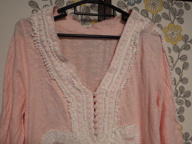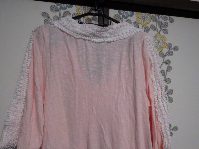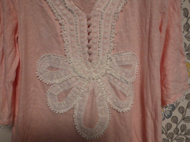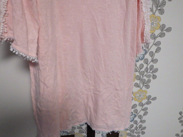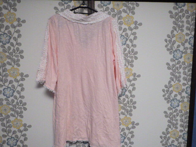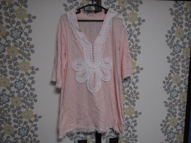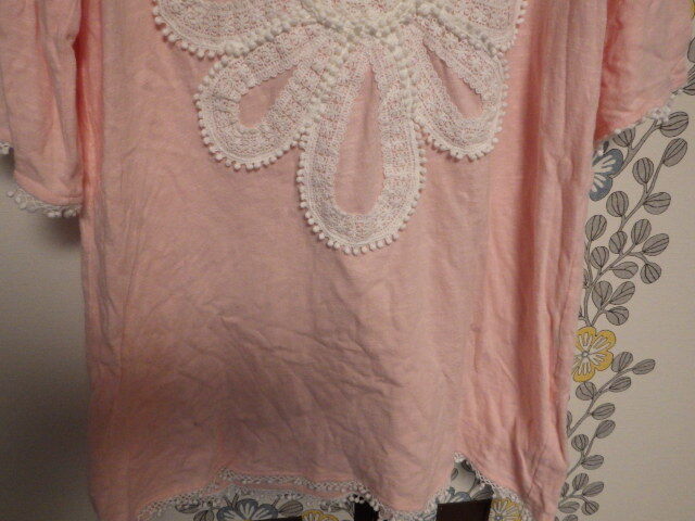 チュニック ベビーピンク レースモチーフ 七分袖 可愛い