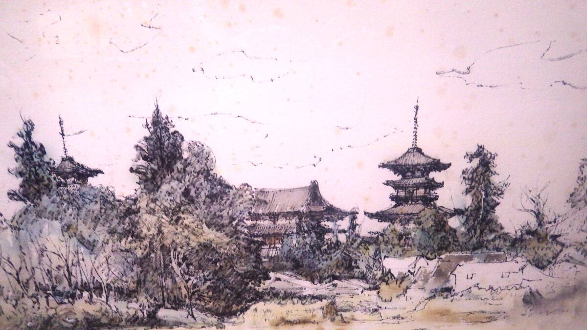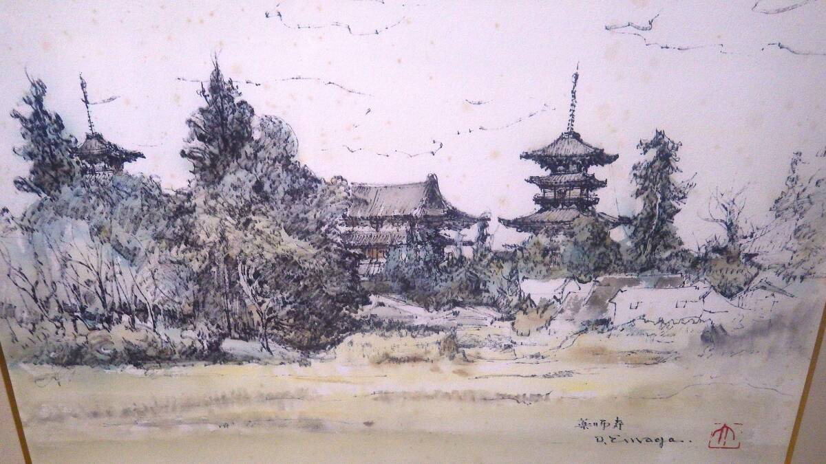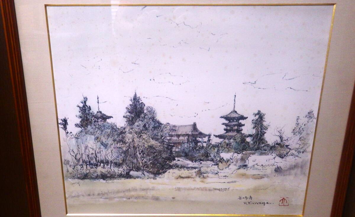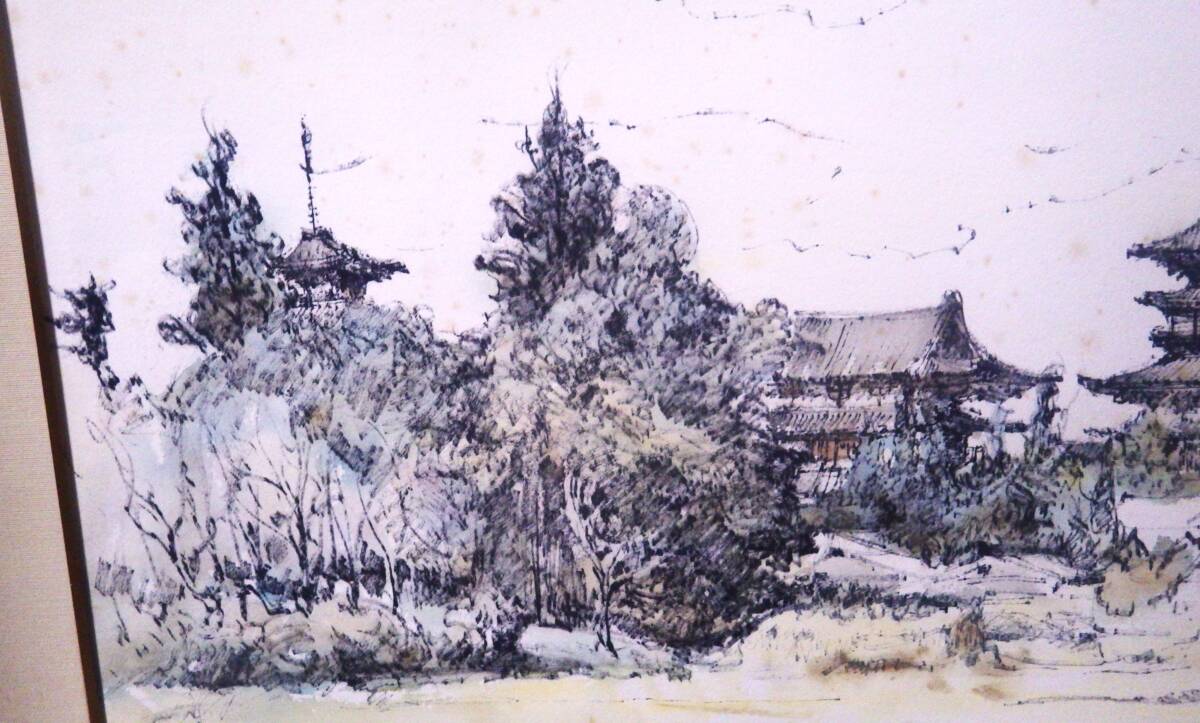| 真作 水彩画 『薬師寺』 在銘 肉筆 ガラス額装品 | |