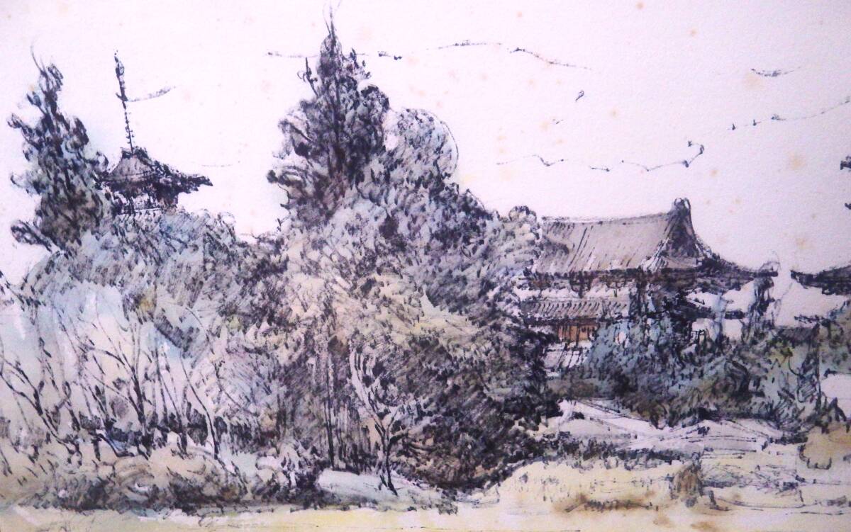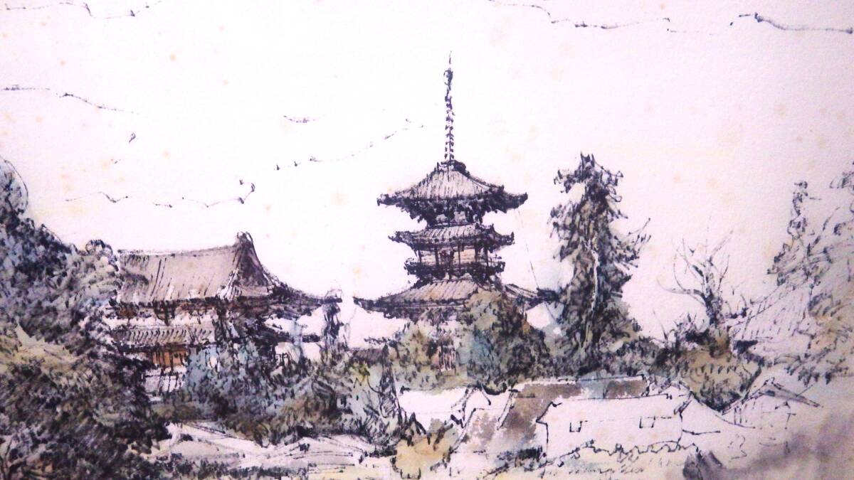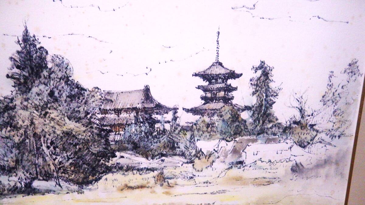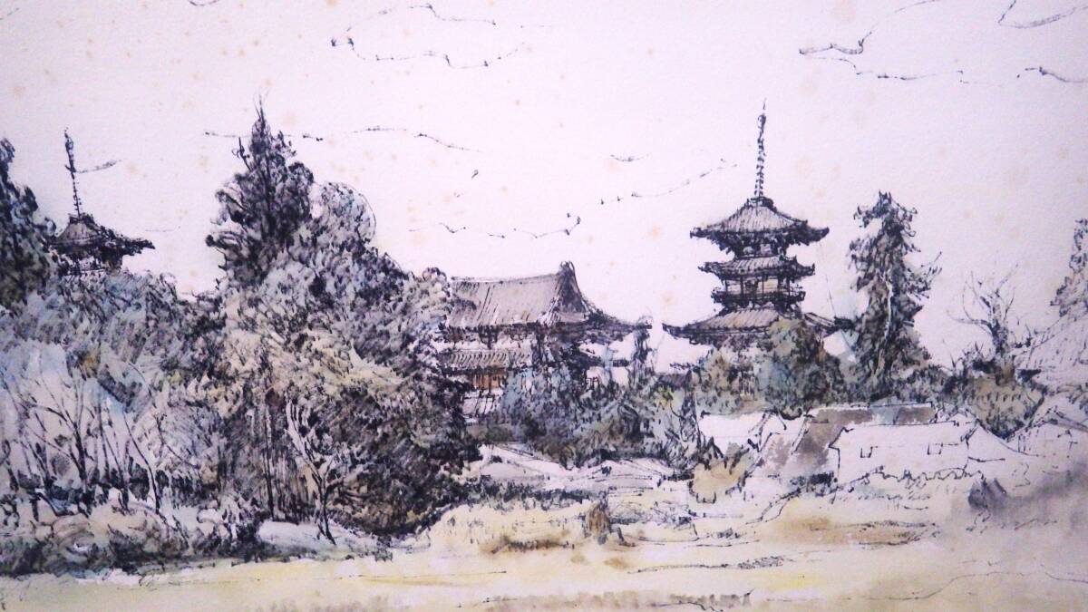 | 真作 水彩画 『薬師寺』 在銘 肉筆 ガラス額装品 | |
