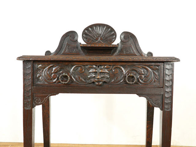 サイドテーブル 引き出し付き グリーンマンの彫刻 かっこいいデザイン コンソール イギリス アンティークフレックス 59112