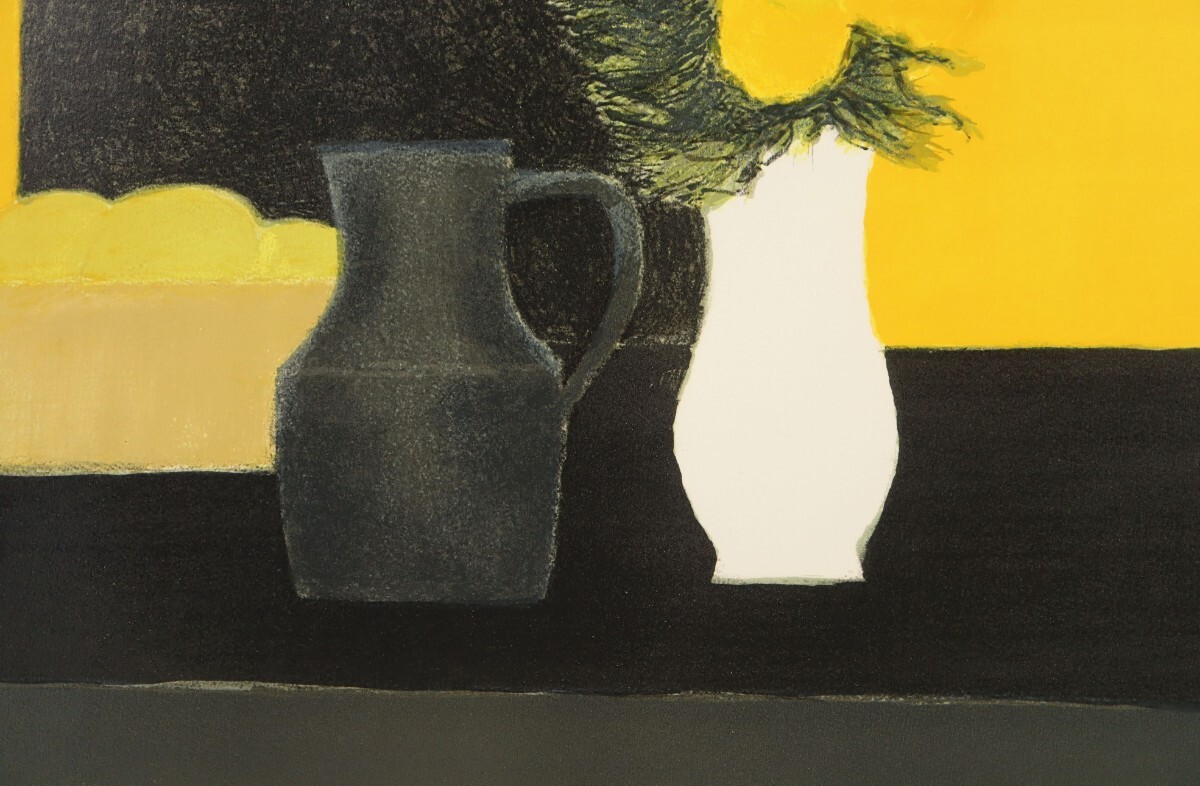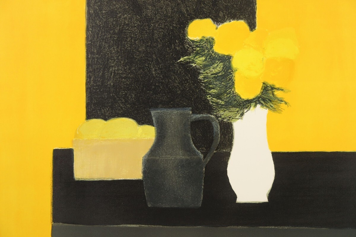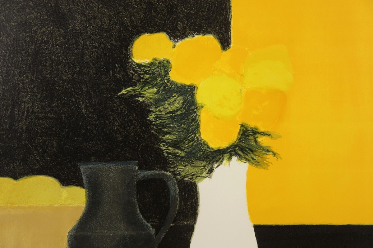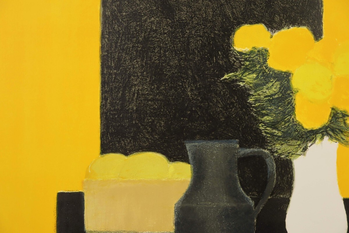 真作 ベルナール・カトラン 大判リトグラフ「ビクトリア調の花瓶とレモンバスケットのある静物」画67×48cm 抽象化簡素化し明色彩やか 9212