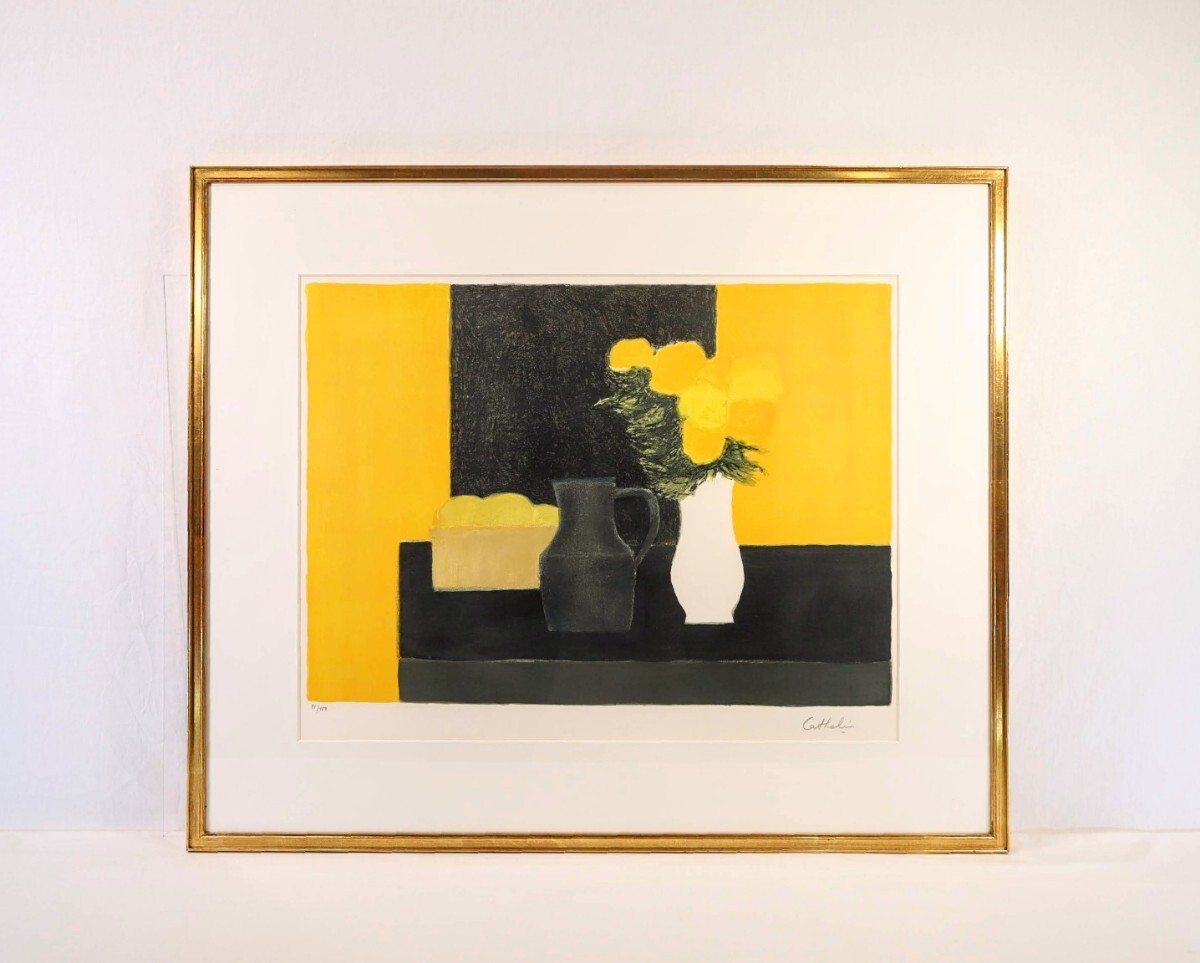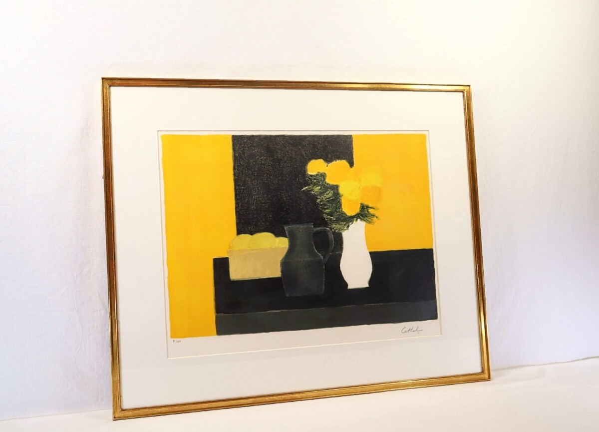 ★ベルナール・カトラン リトグラフ「ビクトリア調の花瓶とレモンバスケットのある静物」★