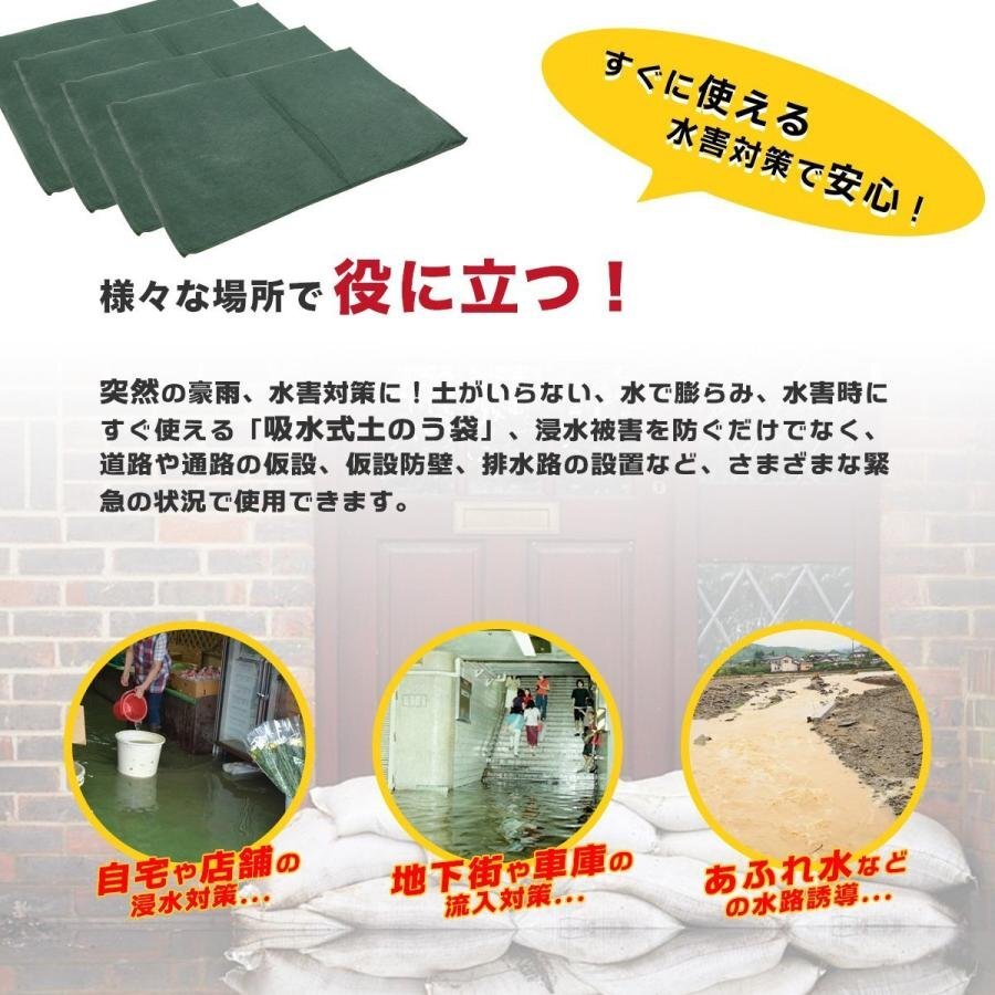★★吸水性土のう 水だけでふくらむ土を使わない 台風、大雨、浸水の備えに 緊急災害補助用品 吸水性簡易土のう