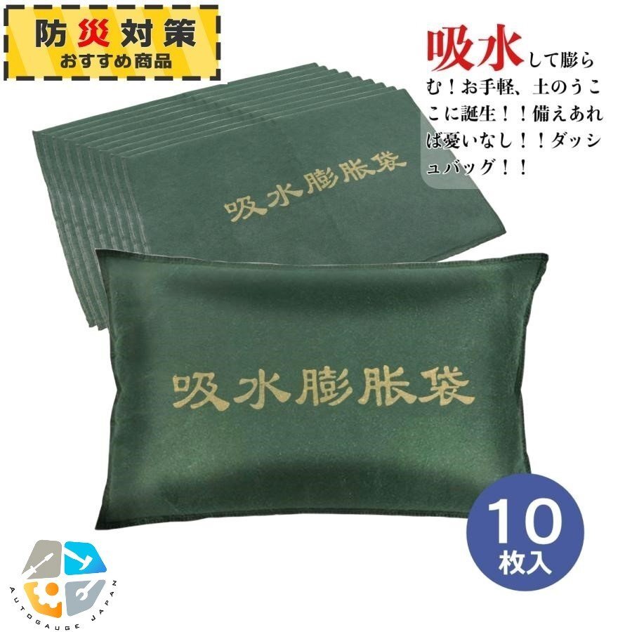 【10枚入り】★ダッシュバッグ 不織布吸水膨張袋 水だけでふくらむ 吸水膨張袋 台風 雨浸水の備え 緊急災害補助用品