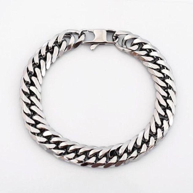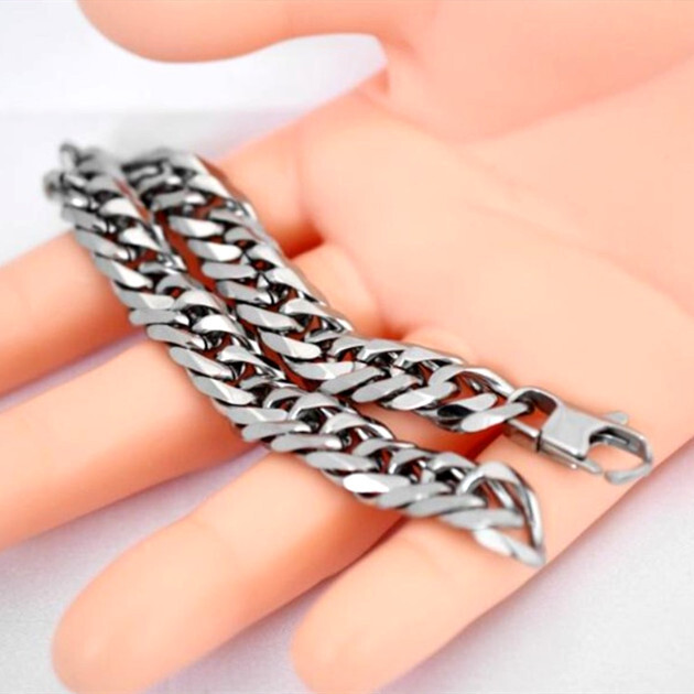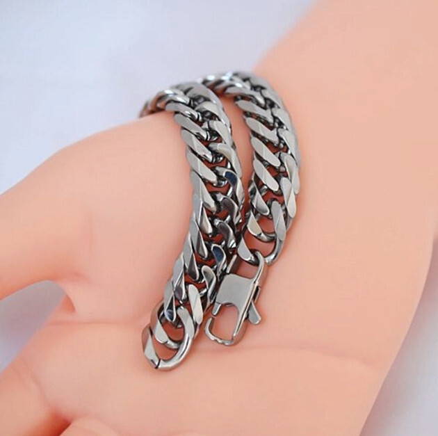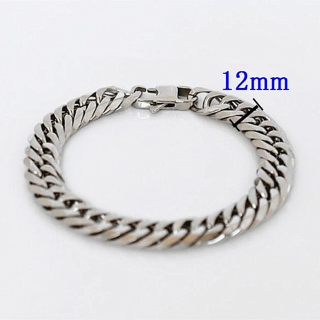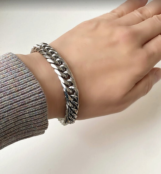 ●金属素材:ステンレス。●サイズ:全長22cm、内周約21.5cm。●幅:12mm。●厚さ:約4.5mm。●重さ:41g。