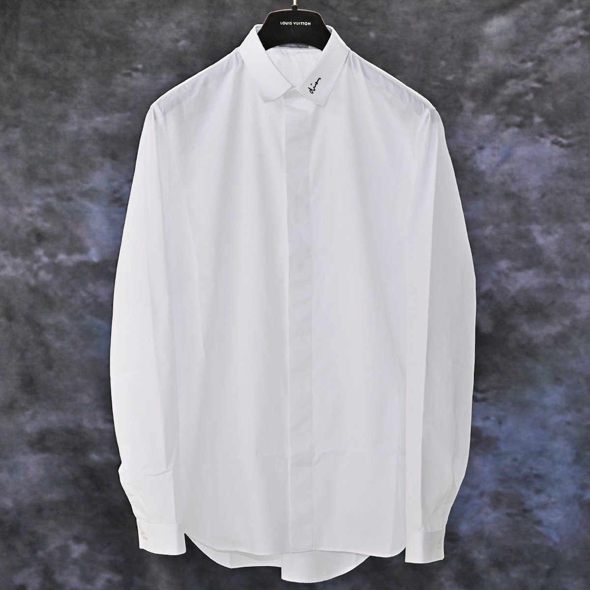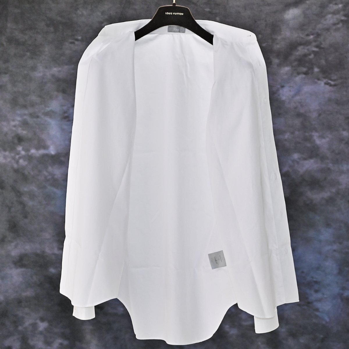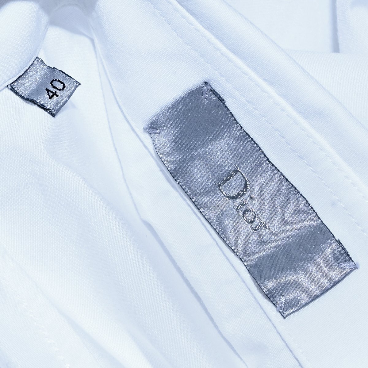 ディオール・オムの2024 コットンポプリン ドレスシャツです。 テイラリングはメゾンが大切にしてきたヘリテージであり、ディオール アトリエのサヴォワールフェールの真髄を体現しています。 柔らかで繊細なホワイトのコットンポプリンを使用したシャツは、襟にあしらったブラックの手書き風Diorシグネチャーの刺繍が特徴です。 アイコニックなこのアイテムをスーツに合わせれば、モダンでフォーマルなディオールルックが完成します。 公式HPもも掲載されている現行モデルなのでお探しの方も非常に多いかと思います。 |