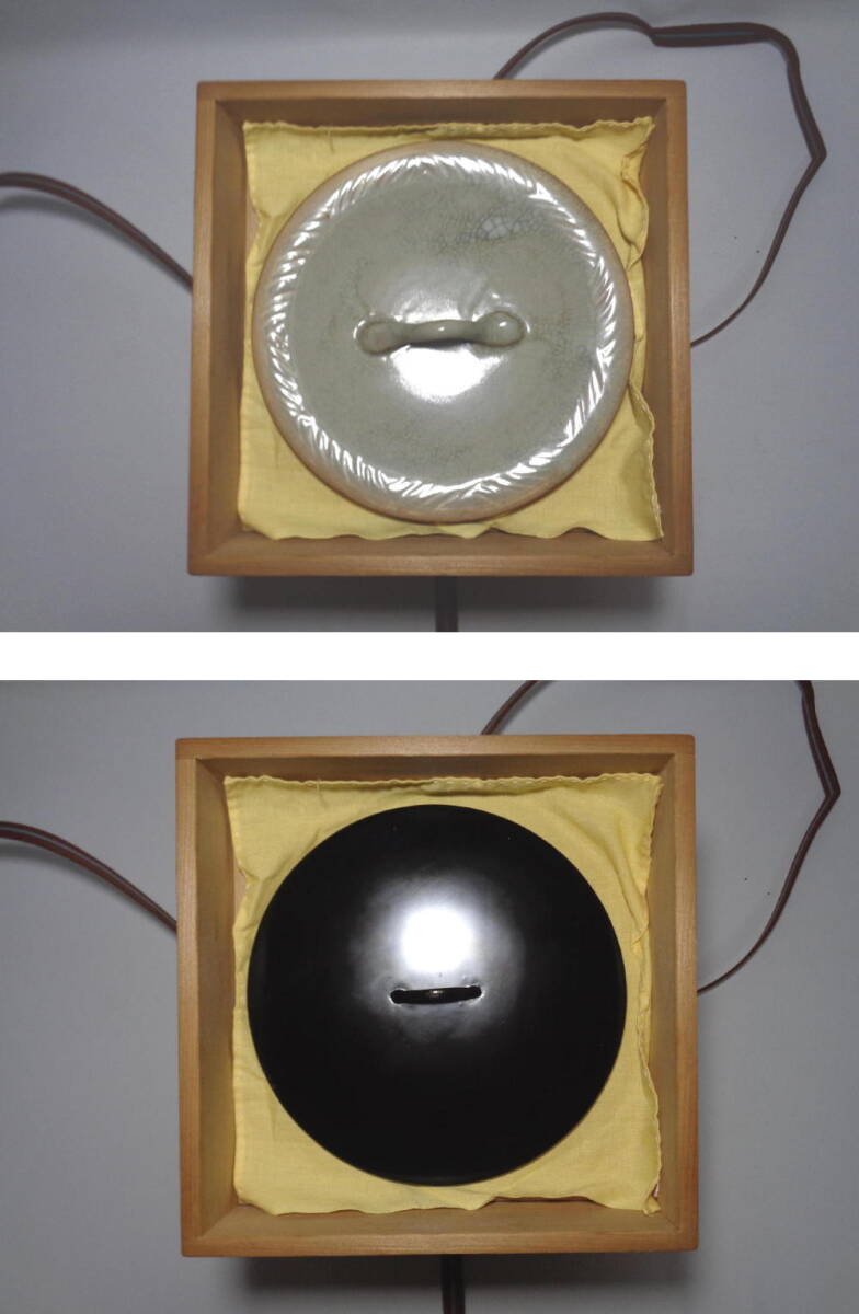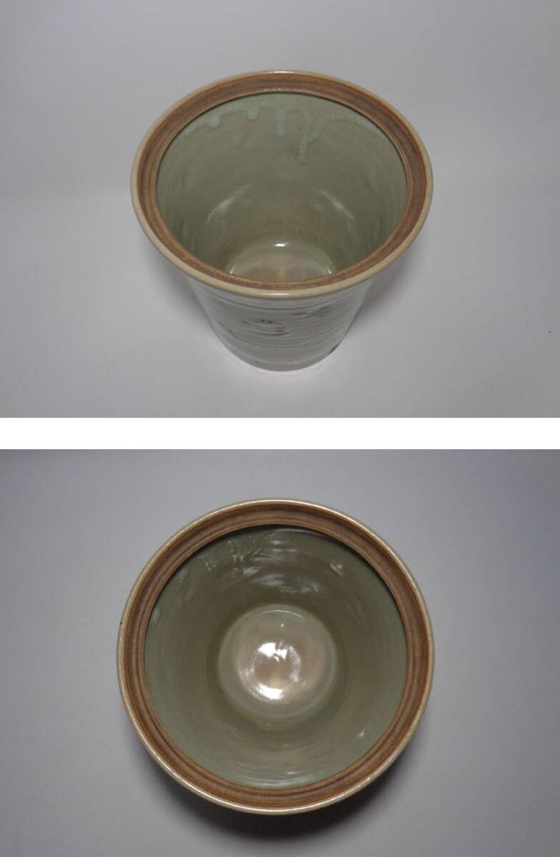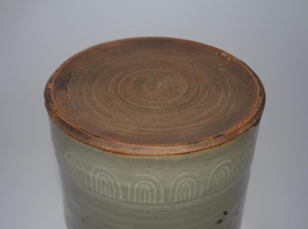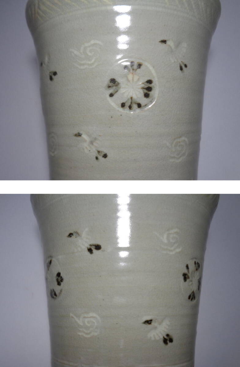 【説 明】・・・古い時代の古曽部焼で胴縁に雲鶴細工が施された替え蓋付の水指です