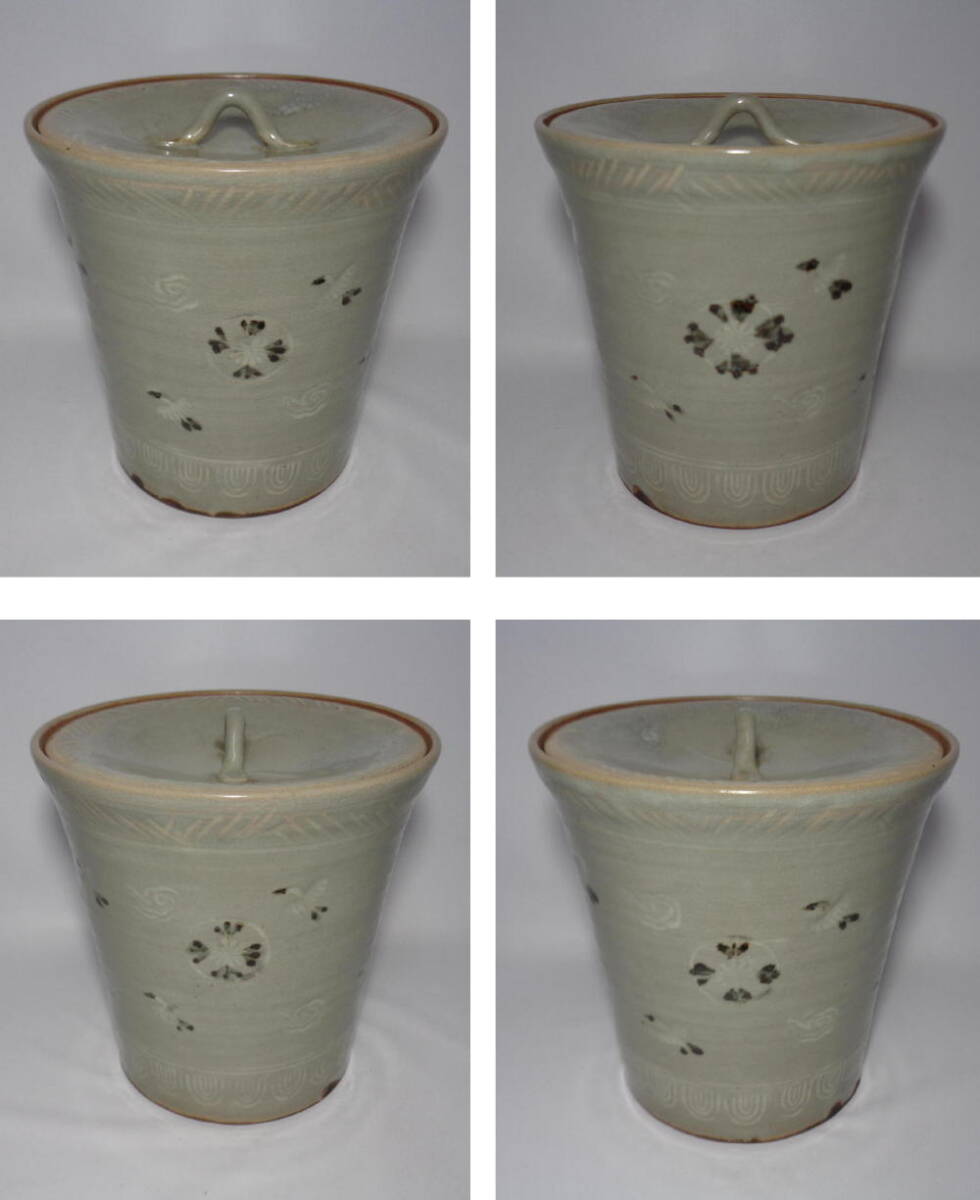【真作保証】古曽部焼 (替え蓋付) 雲鶴文・水指