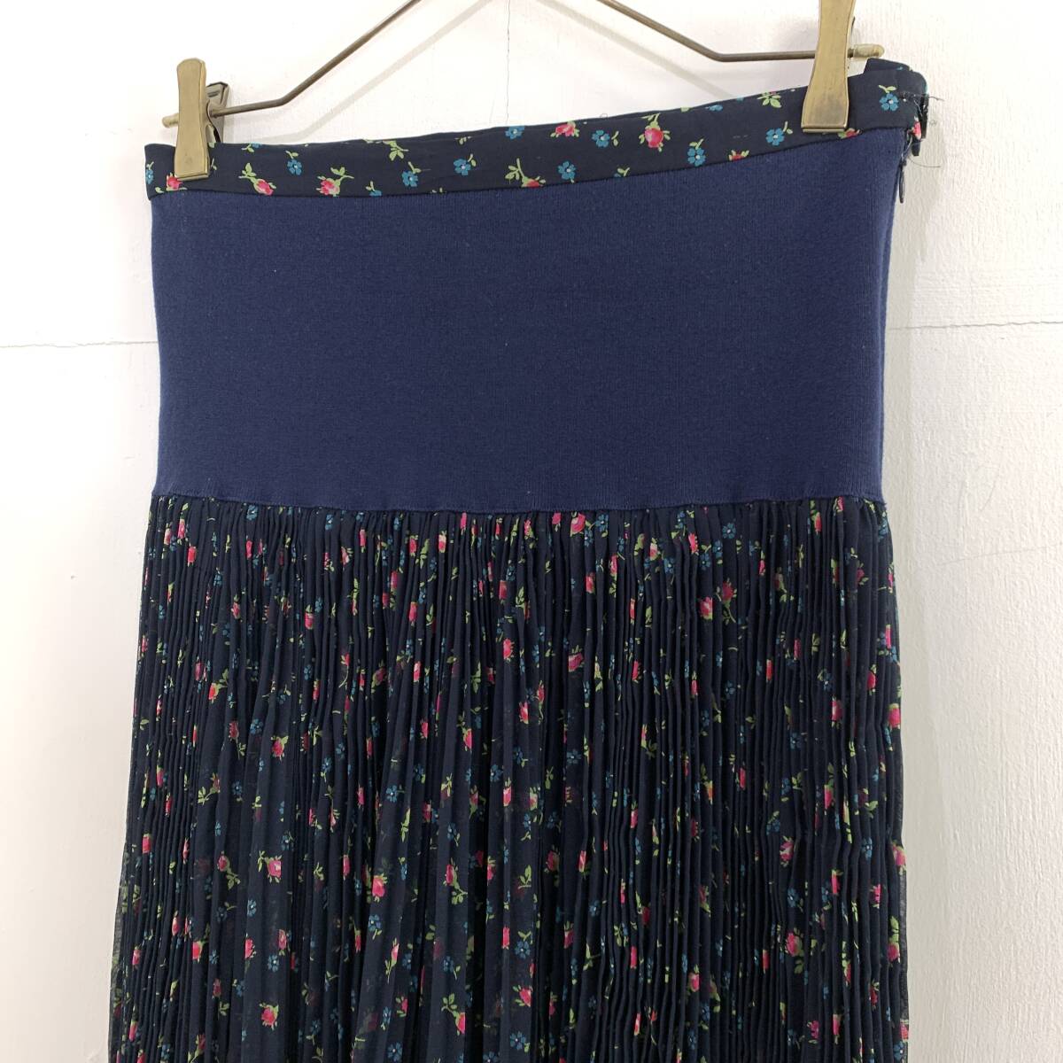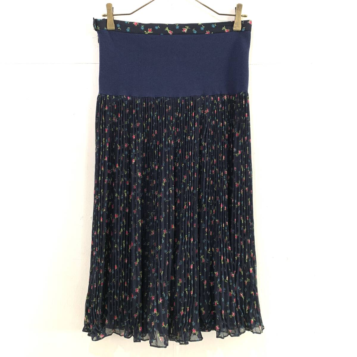 ☆Lella sport レラスポーツ イタリア製 シルク100% 絹 総柄 花柄 フラワー プリーツスカート ネイビー系 サイズ44【送料一律/同梱可能】H