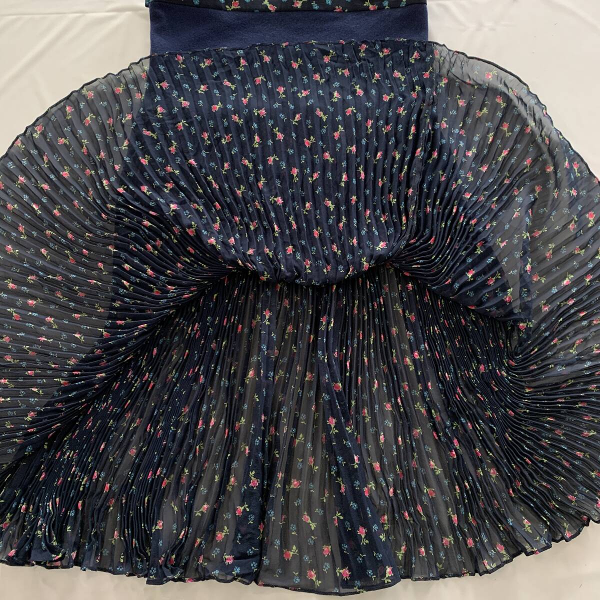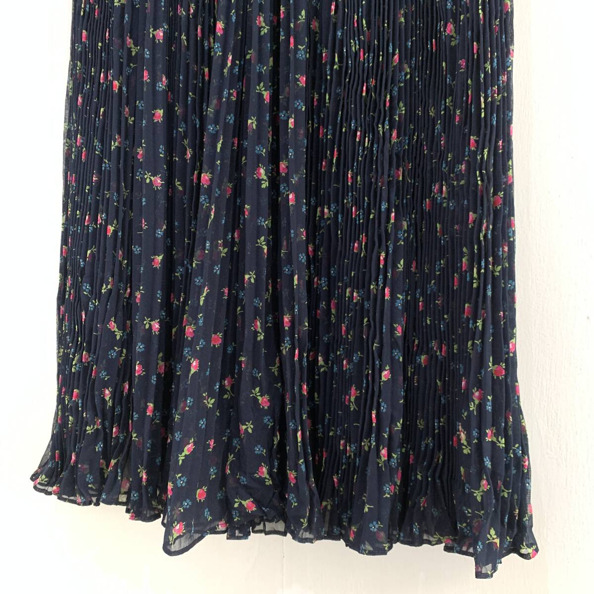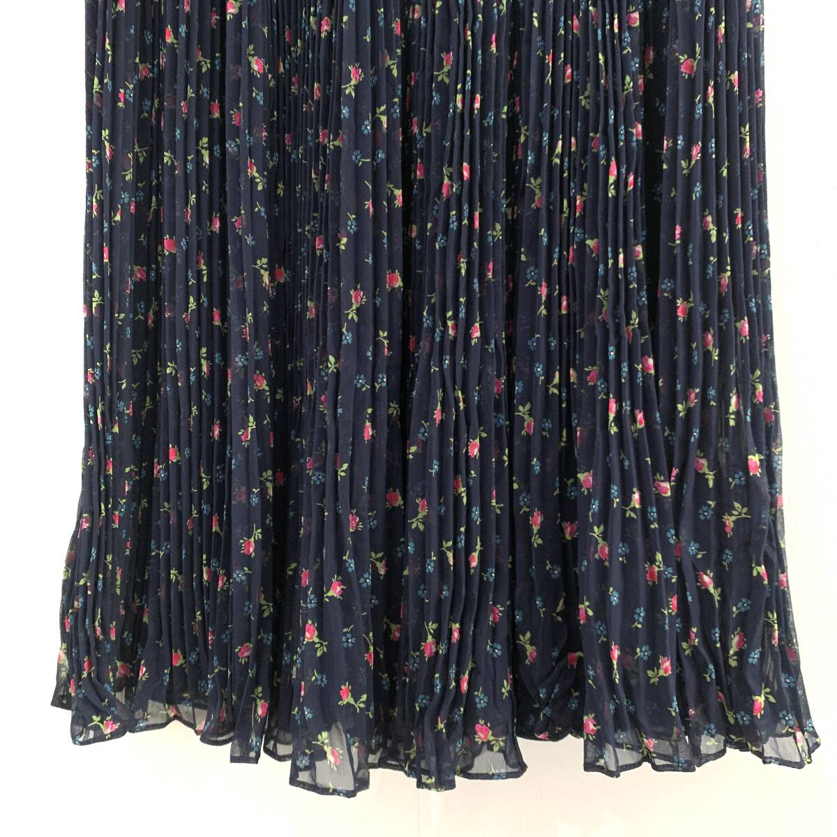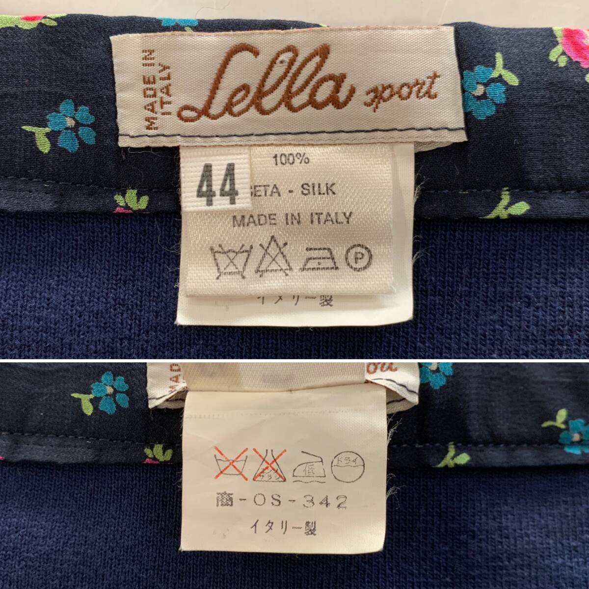 ☆Lella sport レラスポーツ イタリア製 シルク100% 絹 総柄 花柄 フラワー シフォン プリーツスカート ネイビー系 サイズ44【送料一律/同梱可能】Hの出品です。
