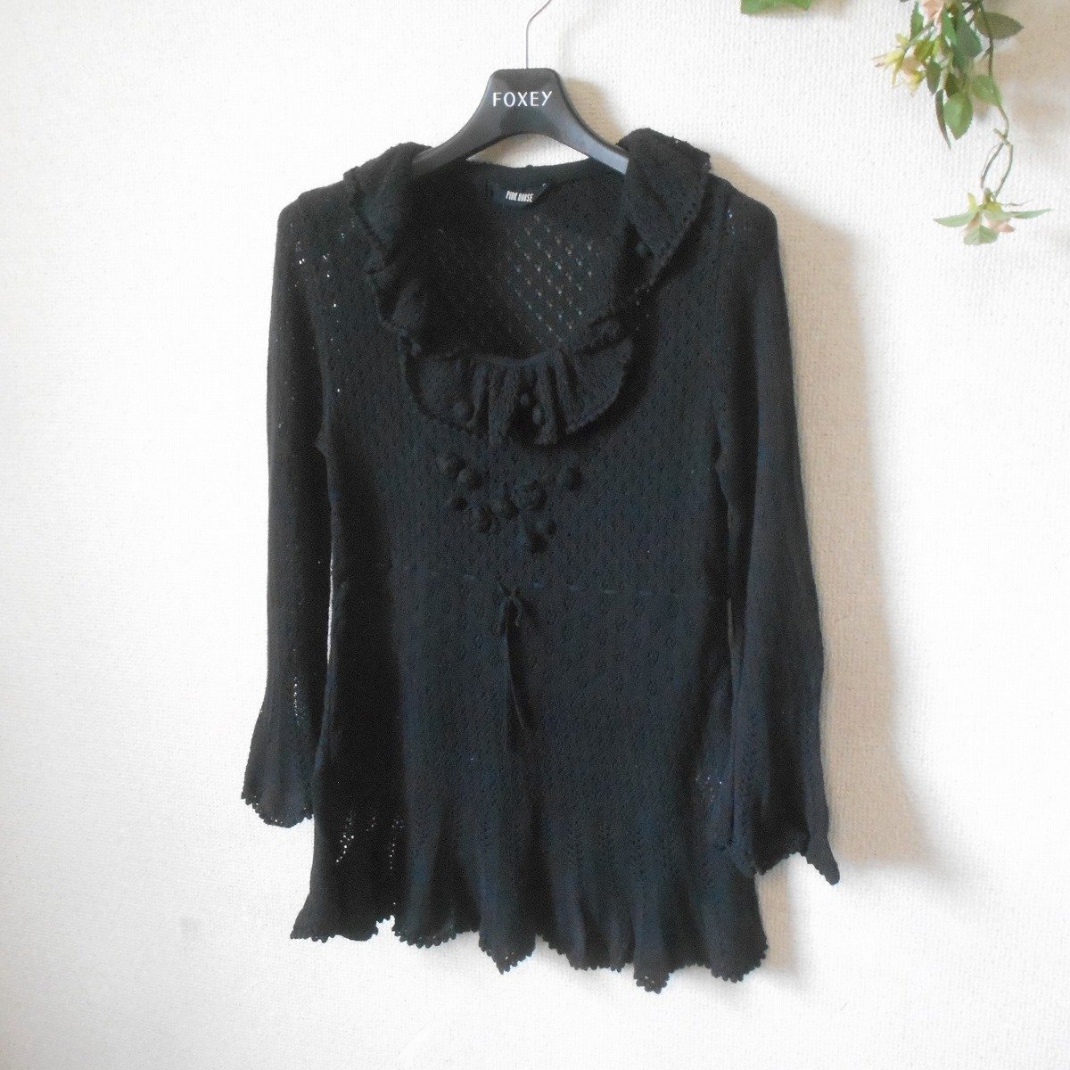 【ポイント】ピンクハウスのセーターになります。お色は黒色で7~8分袖くらいの、春夏秋の3シーズン使えるお品です。