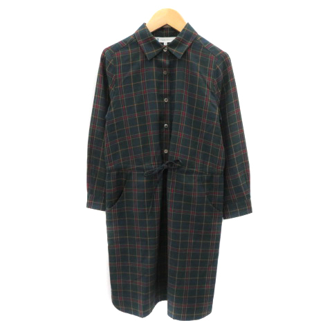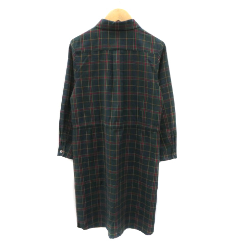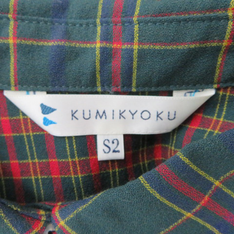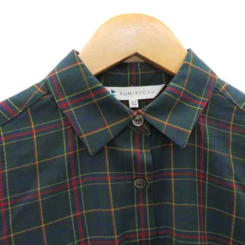 クミキョク 組曲 KUMIKYOKU シャツワンピース ひざ丈 長袖 ハーフボタン チェック柄 S2 マルチカラー 緑 グリーン /YK25 レディース