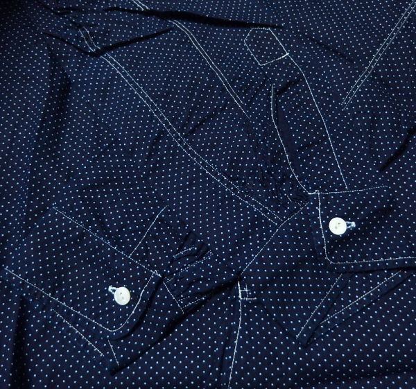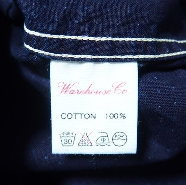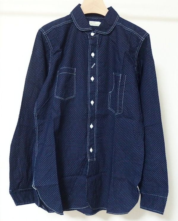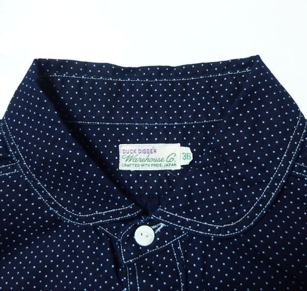 | <商品名> WAREHOUSE ウエアハウス DUCK DIGGER ラウンドカラー ポルカドット インディゴ ワーク シャツ 36 <サイズ> 36 <詳しい寸法> 肩幅41身幅52着丈72袖丈61(単位:㎝) ぐらいです。 <商品状態> 多少の使用感、素材特有の細かなスレやアタリはございますが良好です。 <商品説明> COTTON100