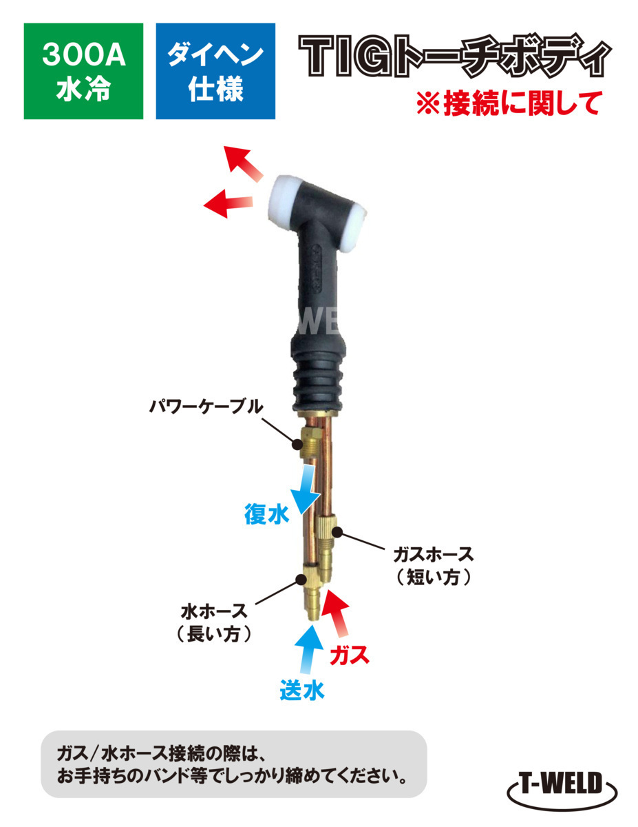TIG トーチボディ 300A水冷 AW-18 用 ダイヘン専用 インシュレーター付き 【ハンドル自由選択】 1本