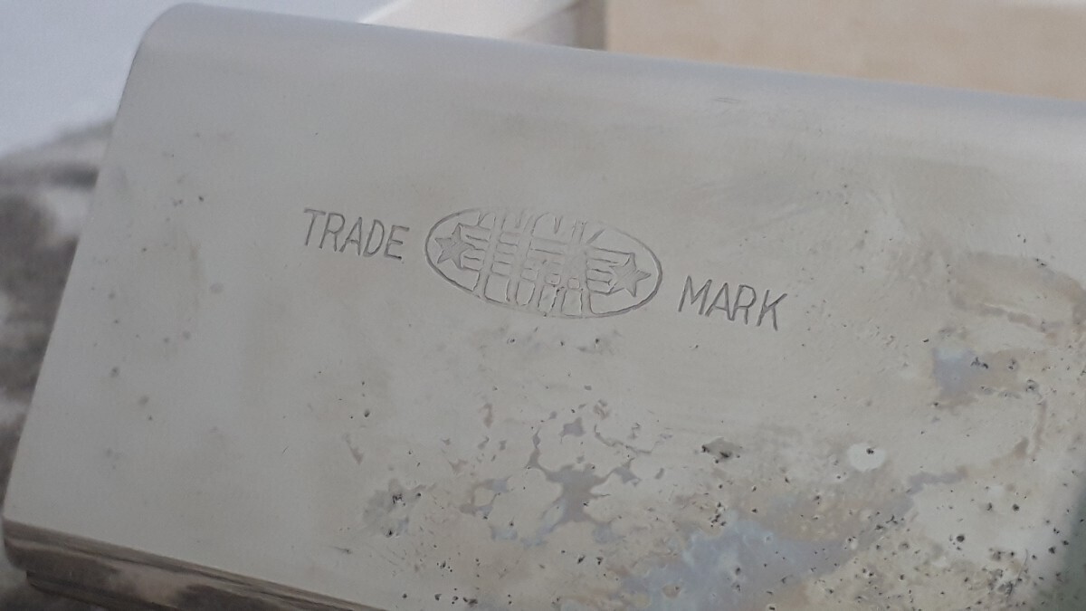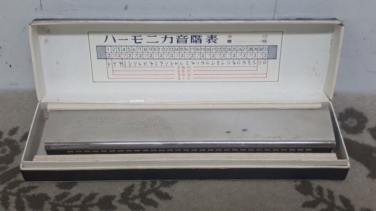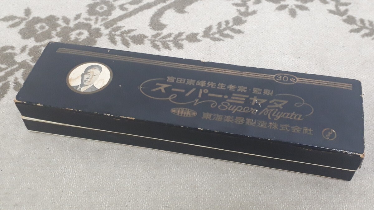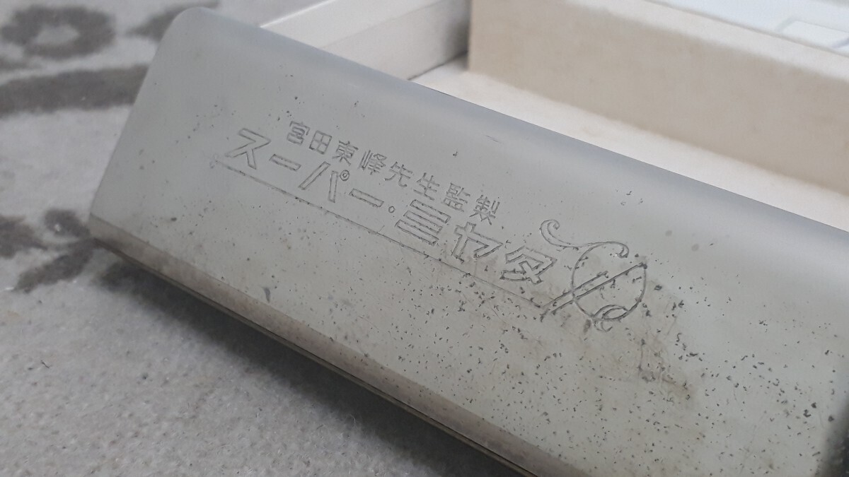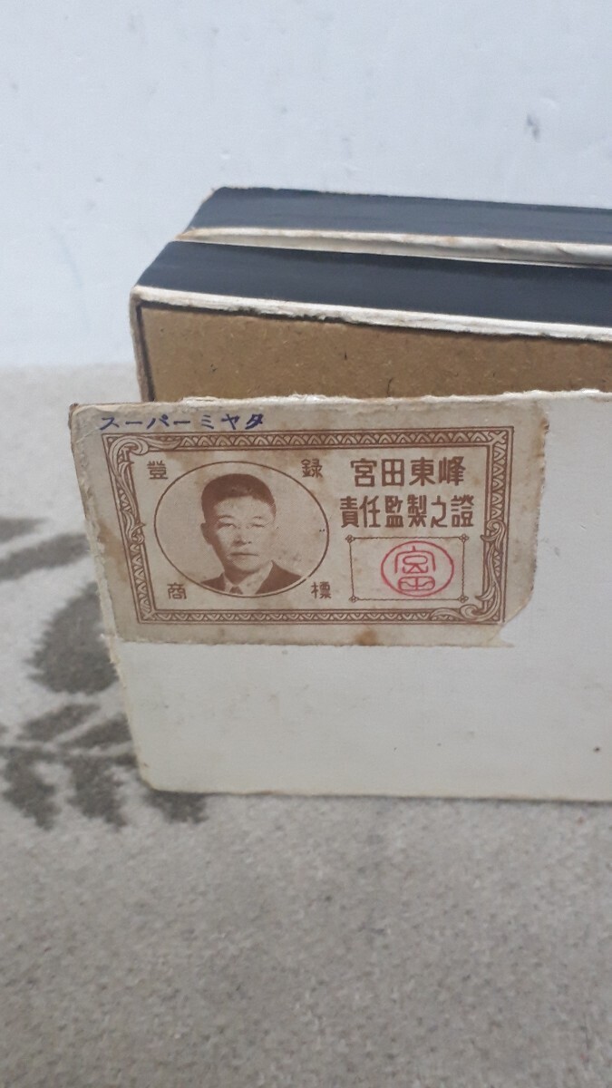 全体的な印象としては破損などはありませんが、金属部にくすんだ様子がうかがえ、年季を思わせる点が散見されます。箱の裏面は装丁の剥がれた部分もあり保管環境があまり良くなかったようです。