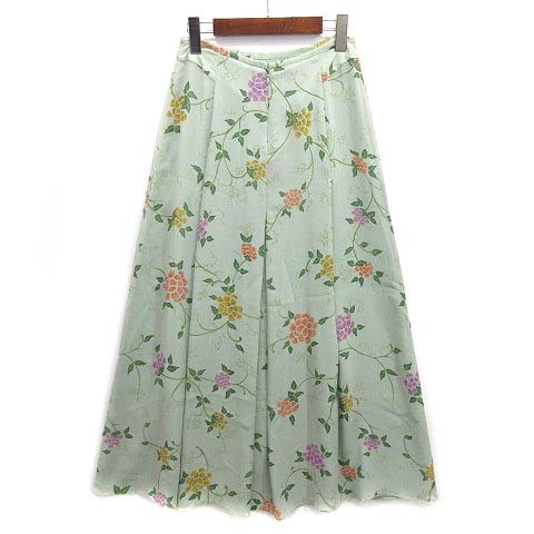 アルマーニ コレツィオーニ ARMANI COLLEZIONI フラワープリント シフォン ロング スカート 花柄 ミントグリーン 38 イタリア製