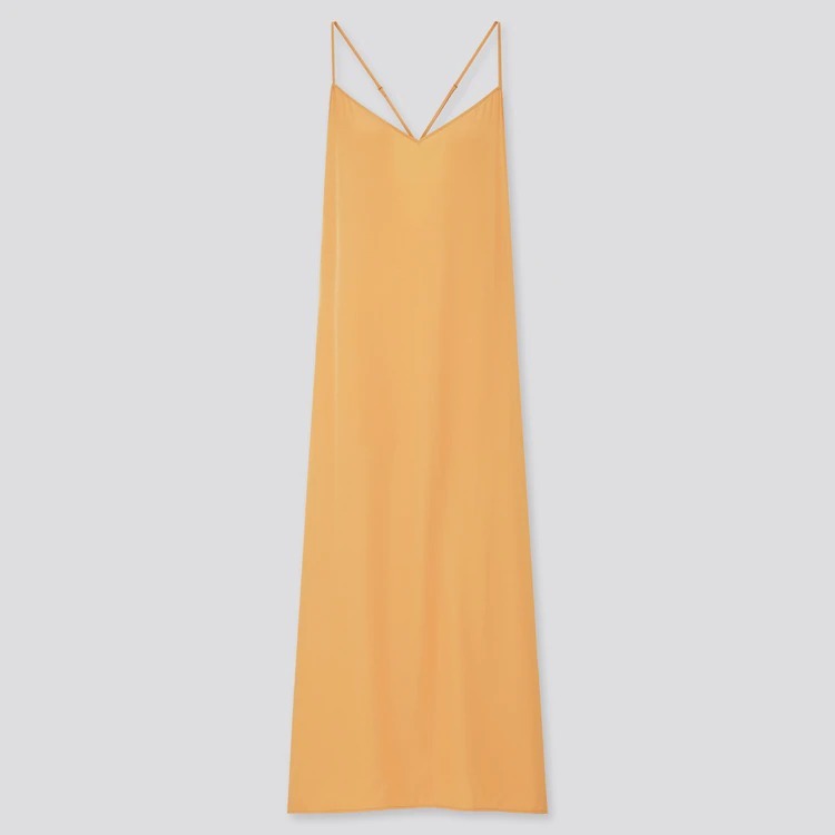 【大幅値下げ】新品タグ付き ユニクロ UNIQLO キャミソールワンピース 後ろに抜け感があってエレガント 上品な光沢 セミフレア Aライン S