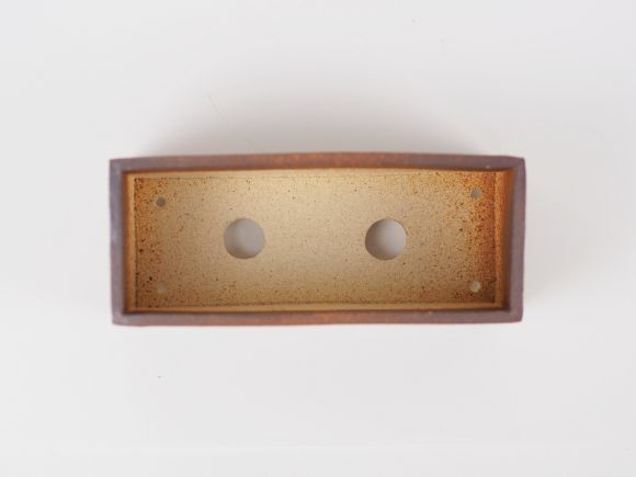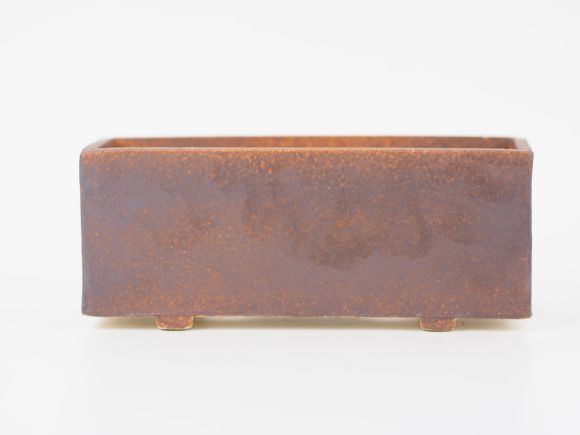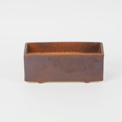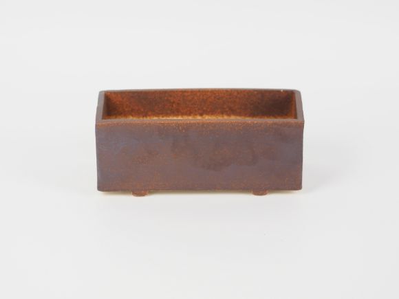 長方の直線、ところどころにのぞく素地など、魅力に満ちていて、独特の温かみを感じられる少し渋めの色合いは、盆栽の魅力を最大限に引き出してくれる。