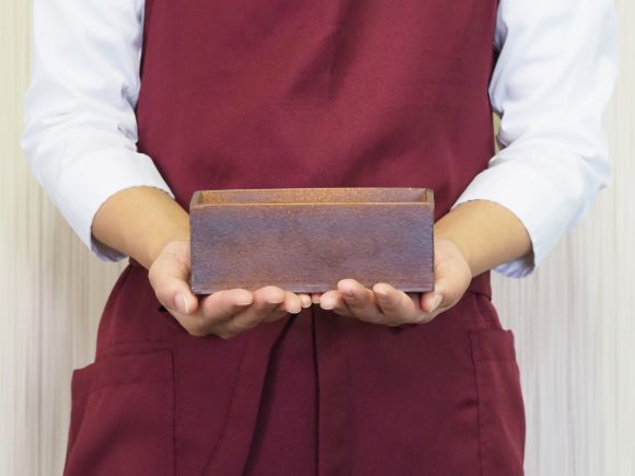 長方の直線、ところどころにのぞく素地の魅力 万古焼 茶 5号 長角 中 幅16.5cm×奥行6.5cm×高さ6.5cm