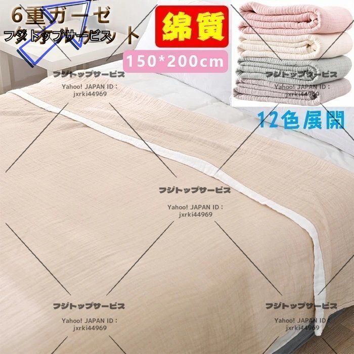 6重ガーゼ タオルケット ブランケット 綿 ガーゼケット タオルケット コットン 消臭 速乾 防臭 ひざ掛け ベビー 150cmx200cm☆3色選択/1点