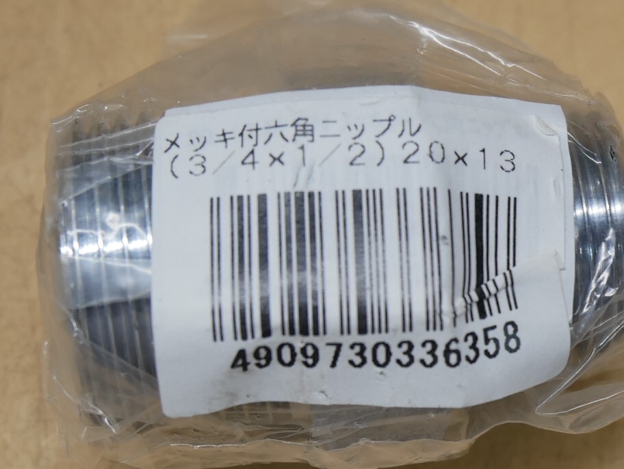 メッキ付 六角ニップル (3/4x1/2)20x13 10個セット 即決価格 | |||