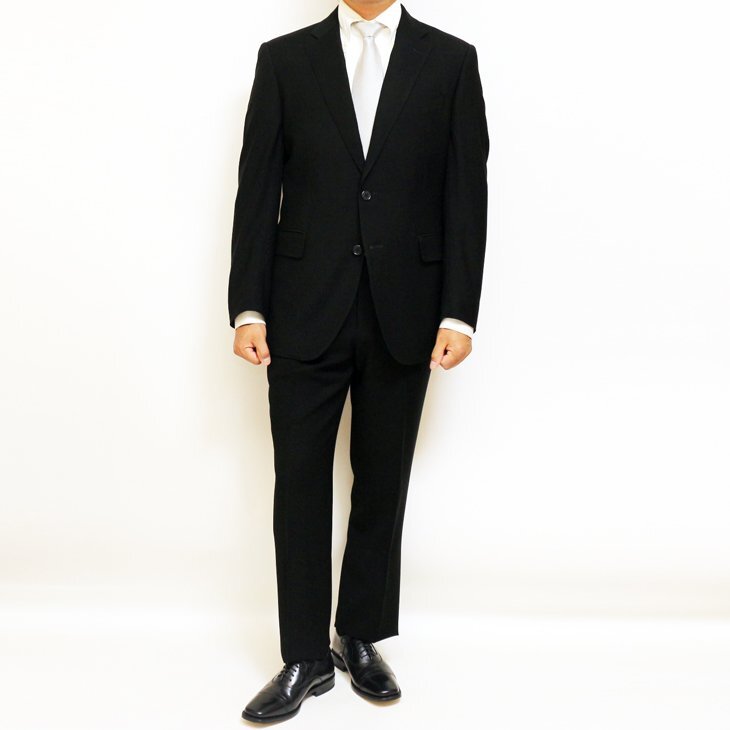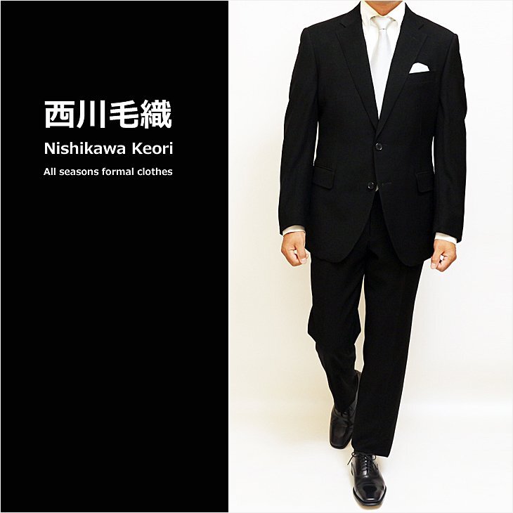 | 品名 | 通年 西川毛織 ブラック黒フォーマル やや細め型 スーツ | |||||||||||