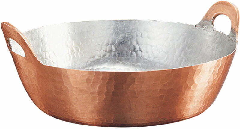 入念に打ち込まれた鎚目模様は、銅の表面を広くするので熱伝導が良くなりお料理をおいしく仕上げます。