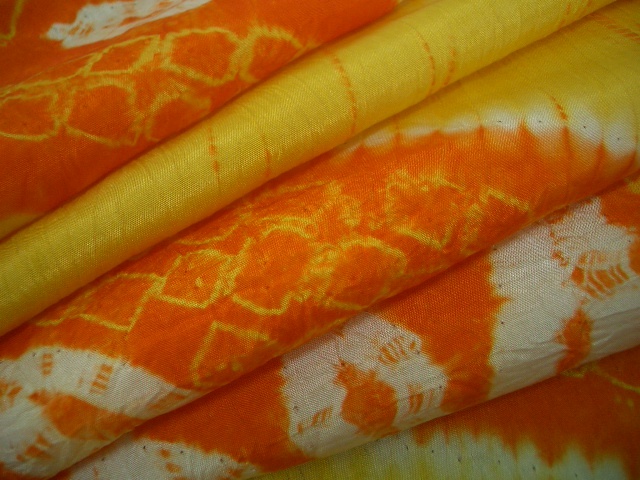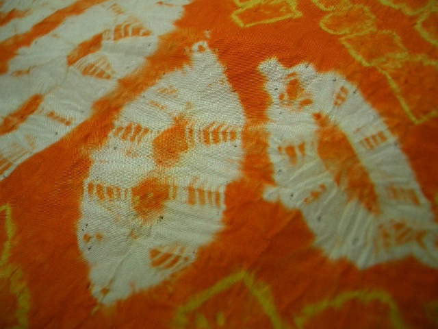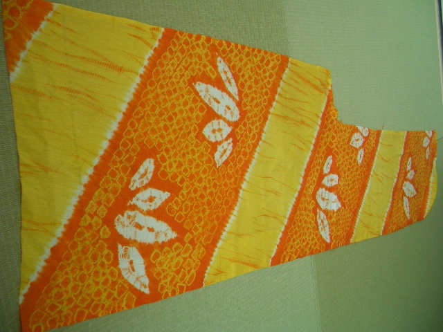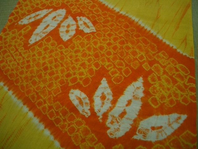 古布正絹羽織裏地はぎれ絞り鹿の子と笹の葉③ 127㎝ アンティーク昔着物リメイク古裂