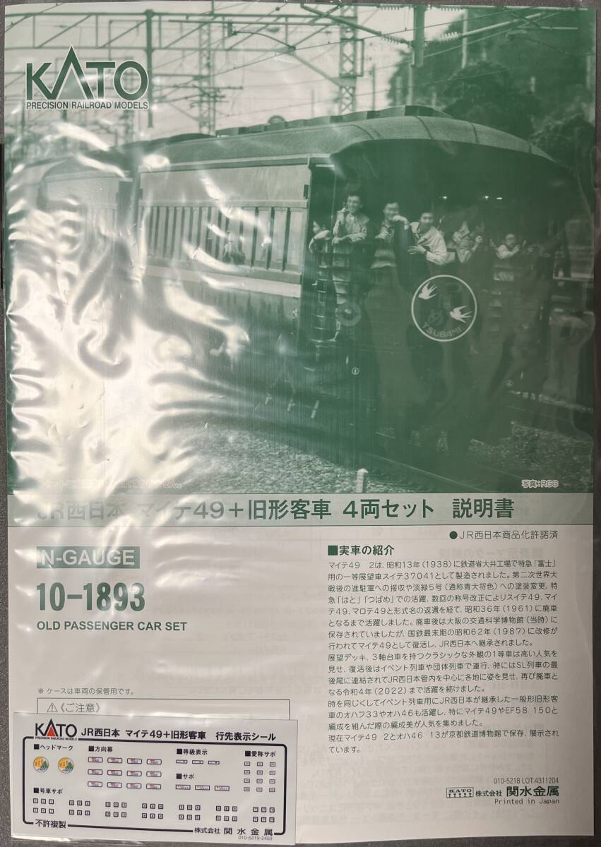 KATO 10-1893 JR西日本 マイテ49+旧型客車 4両セット *新品未走行*