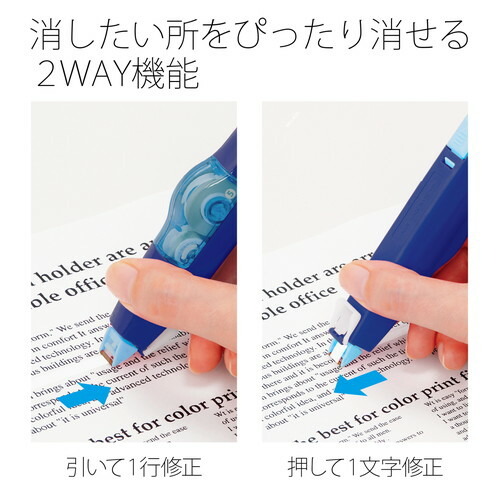 ペンスタンドにもすっきり収納。先端の小さなローラーが修正部分に密着。便利なワンタッチ開閉キャップ。
