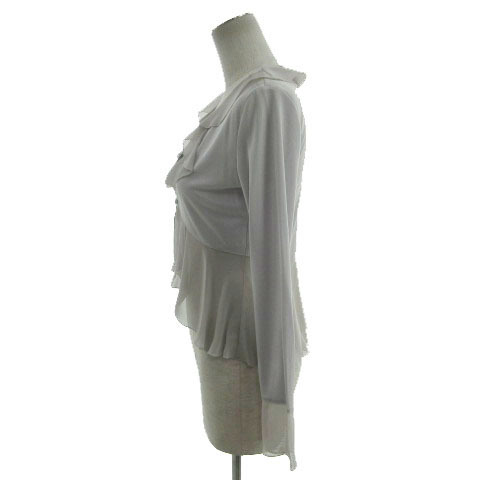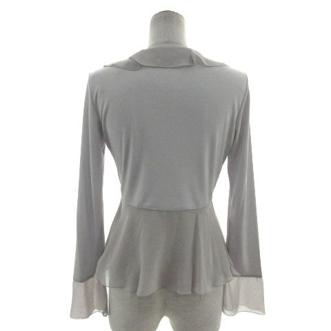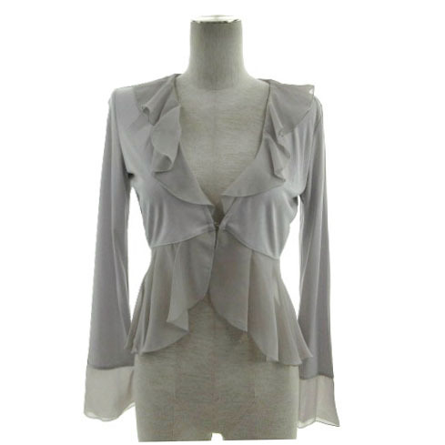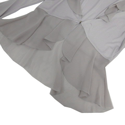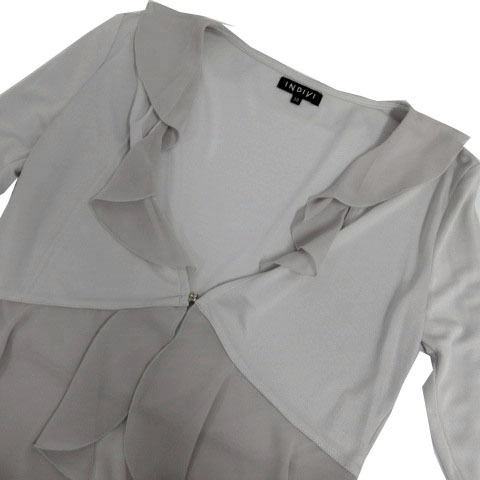 インディヴィ INDIVI カーディガン フリル 長袖 テールカット レース切替え 日本製 グレー 38 レディース