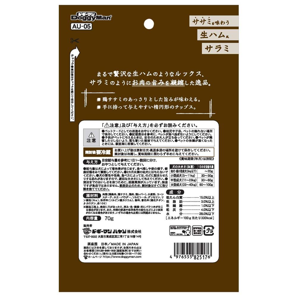肉類(鶏胸肉、鶏ササミ、鶏肉、鶏レバー)、小麦粉、コーンスターチ、ホエーパウダー、ソルビトール、グリセリン、リン酸塩(Na)、保存料(ソルビン酸カリウム)、香料、着色料(酸化チタン、β-カロテン、赤106)
