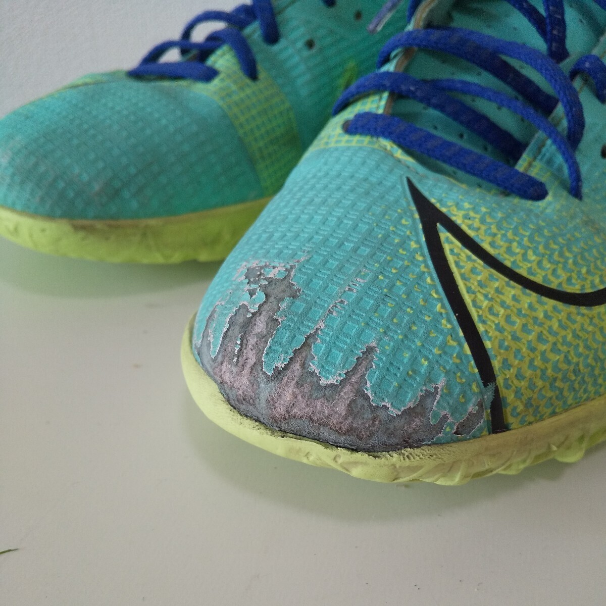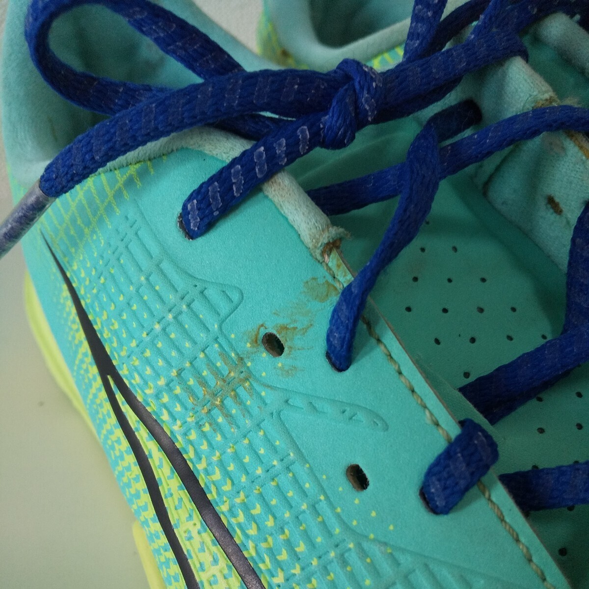 | NIKE マーキュリアル サッカーシューズ トレーニングシューズ サイズは23.0㎝です。 男女どちらでも使えるデザインです。 左足のつま先の塗装がかなり剥げていますのでお安く出品します。 塗装は剥げていますが、つくりはしっかりしていますので、まだまだ履いていただけると思います。 また、内側外側に落ちないシミがあります(画像6,7)。 自宅でウタマロ石鹸など使用してクリーニング済です。 紐を抜いて、ほどけにくい靴紐(ゼログライド)に交換しています。 そのままお譲りしますが、元々の紐もありますのでおつけします。 |