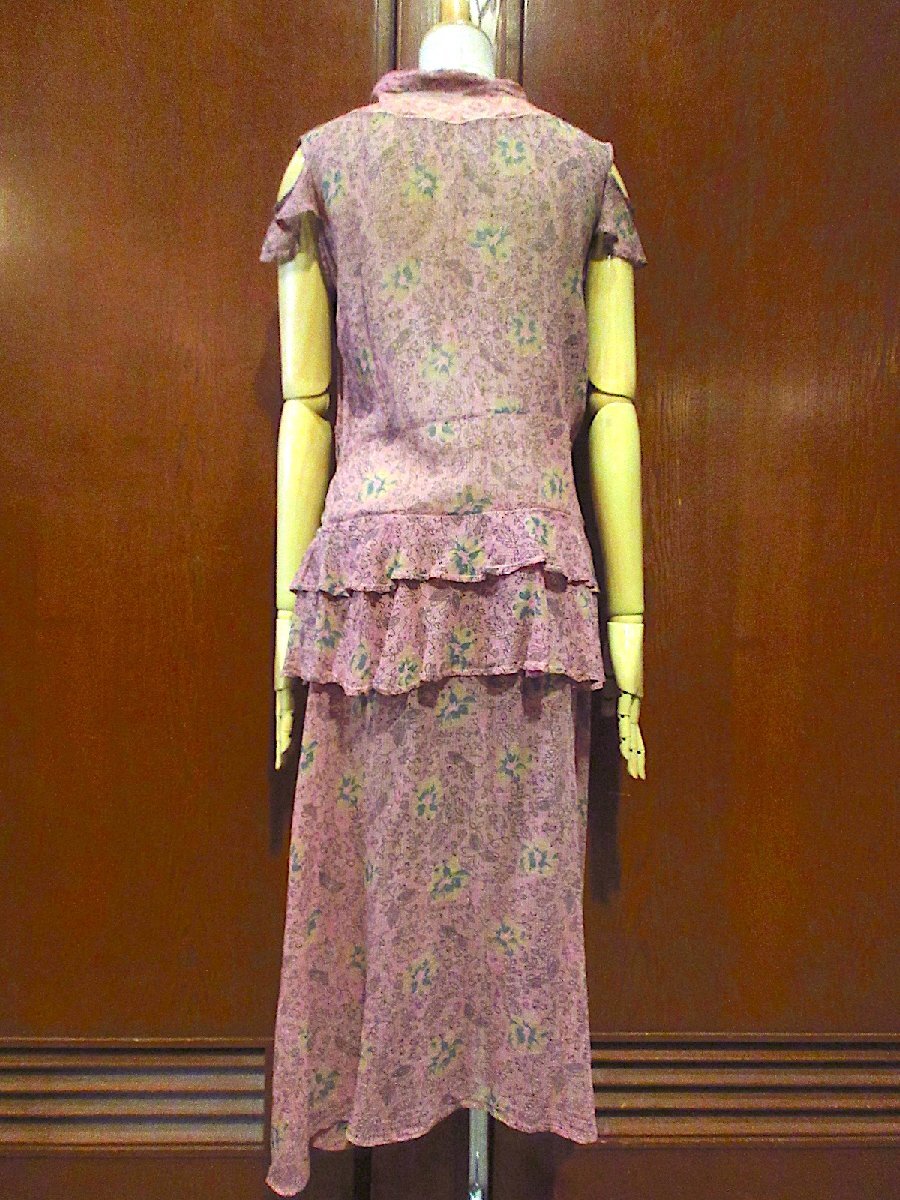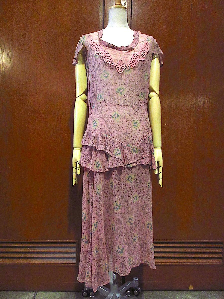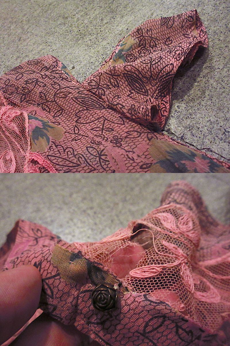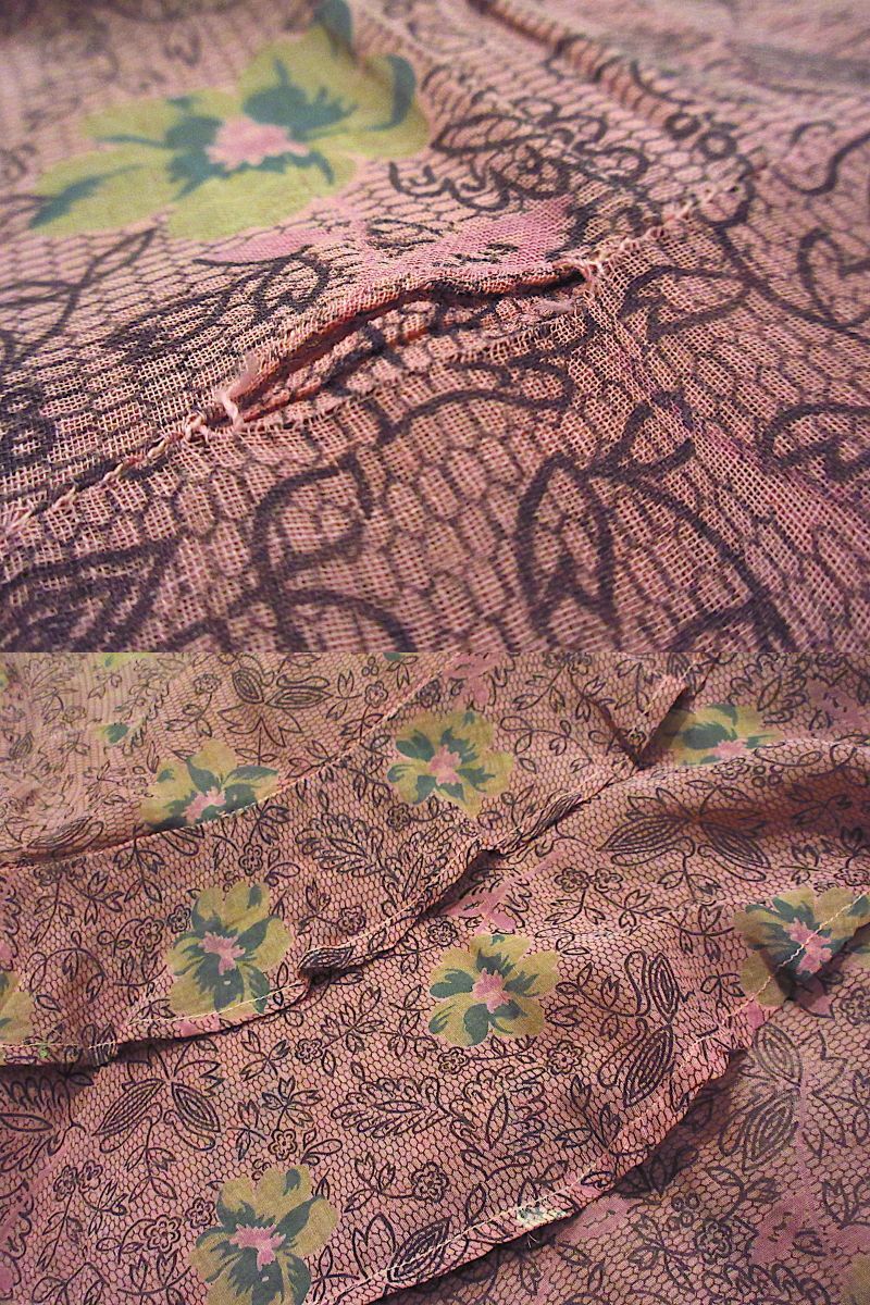 1920's~1930's 花 総柄 レース付き シースルー ノースリーブワンピース